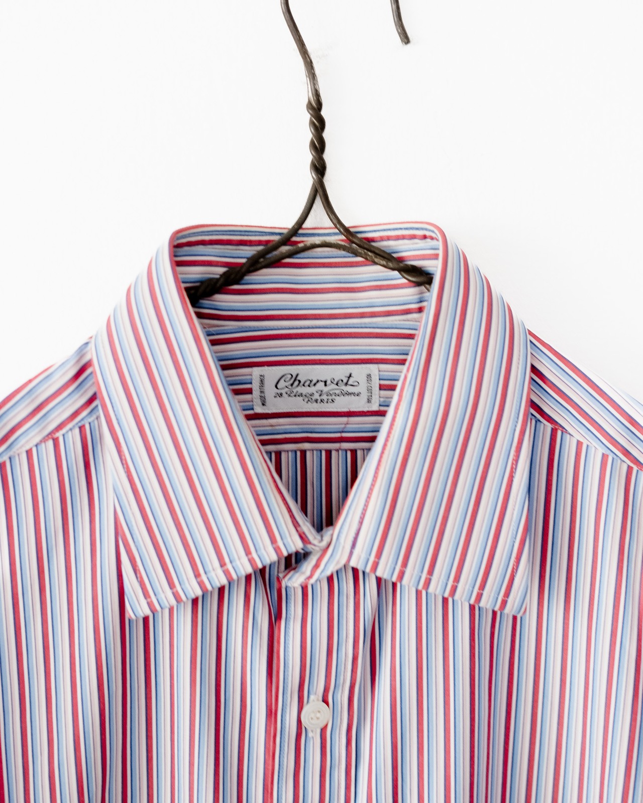 [80's~] "Charvet" Multi Color Stripe Single Cuffs Regular Collar Shirt