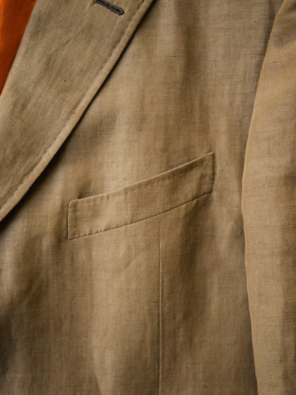 遠目ではソリッド、近くで見ると奥行きのある質感。このギャップもシルクリネンならではの魅力なのかなと。