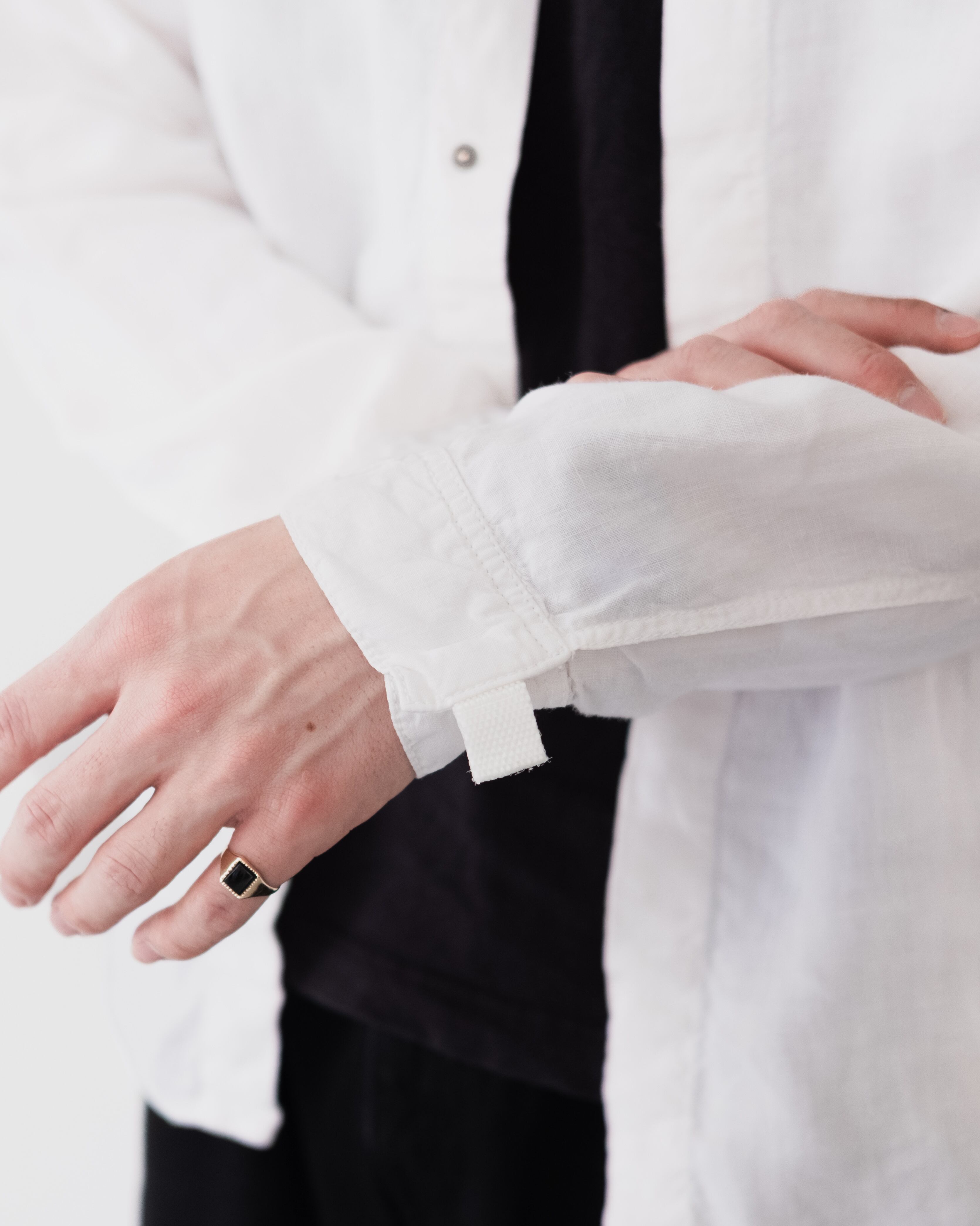 シルエットは、現代にも響く緩やかなリラックス感を持ちながら、腰回りにだけほんのりと曲線を宿し、イタリアンシャツ特有のエレガンスを彷彿とさせます。