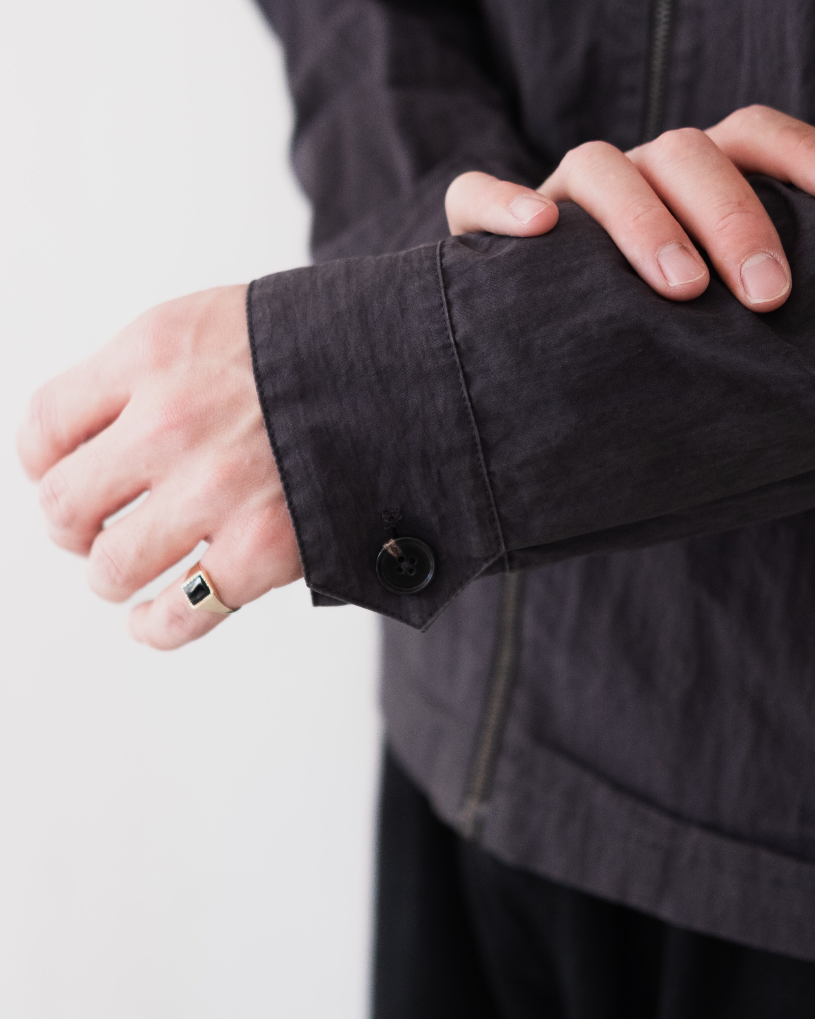 ディテールはあくまでも控えめ。ミニマルなジップやカフスボタン、ポケット仕様などが、動きに合わせて僅かな陰影を描き、シルエットの立体感を引き立ててくれます。