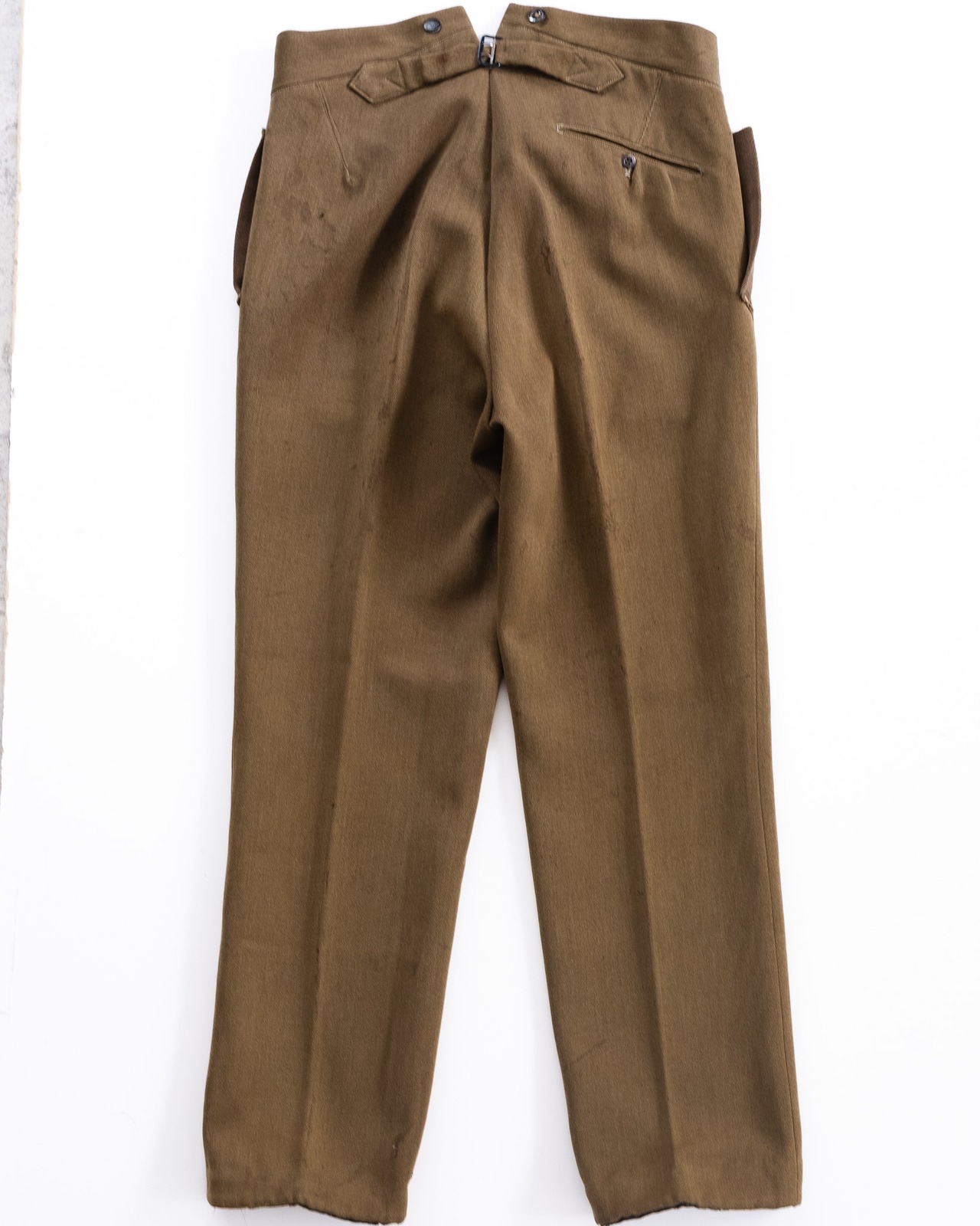 このパンツは、当時のイギリス軍が掲げていた“実用の中に品格を”という思想を体現する一着であり、単なる軍用衣料の枠を超えた「紳士服」としての美しさを備えています。