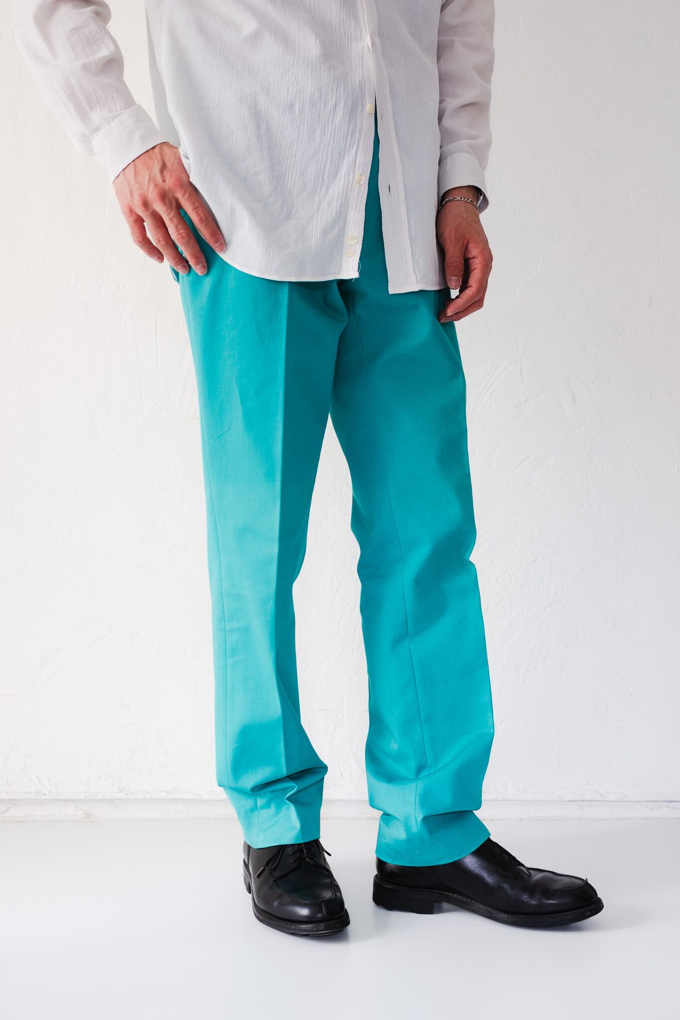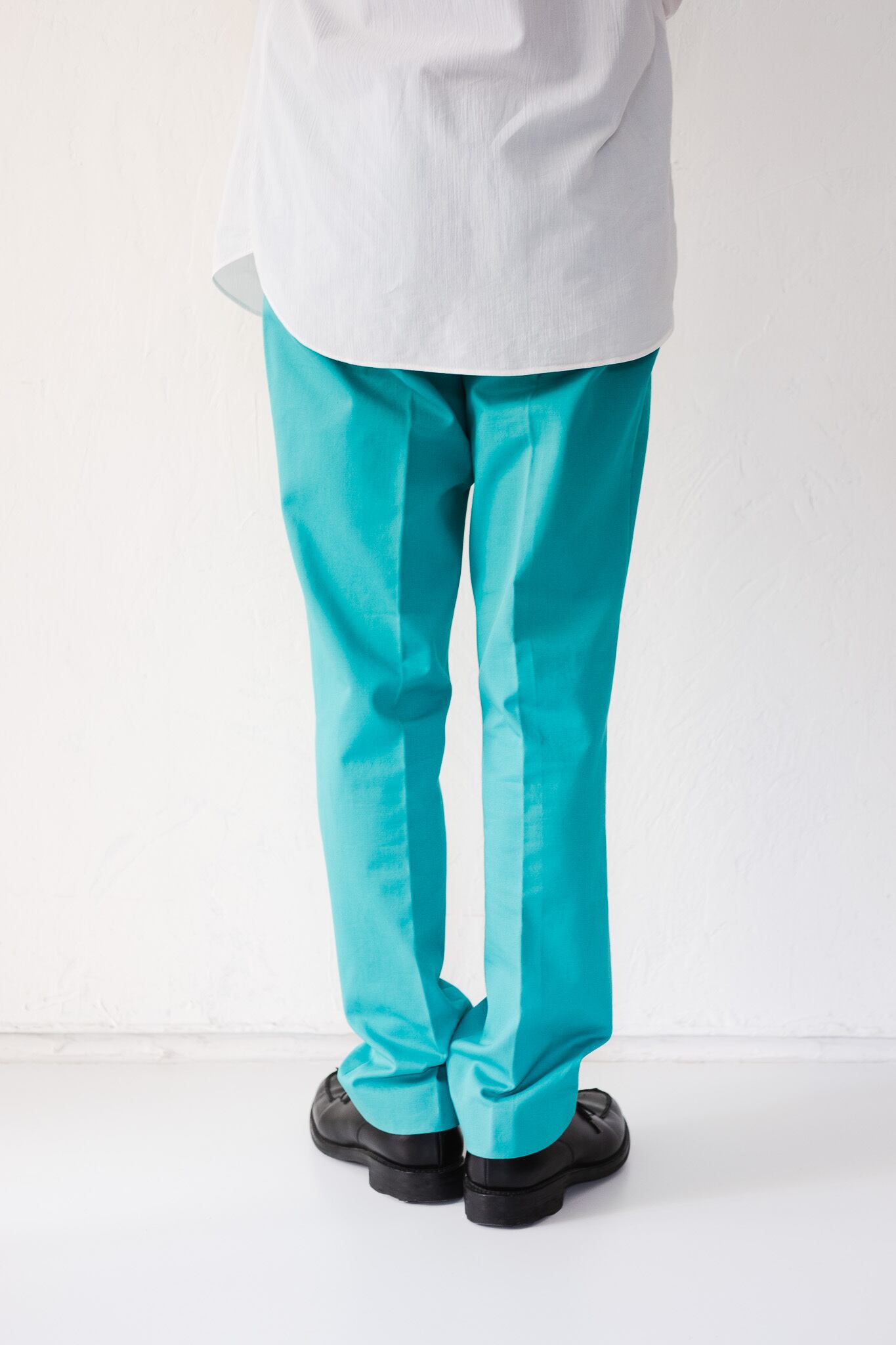 [00's] "Hermès" Turquoise Cotton Twill No tuck Trousers (Designed by Veronique Nichanian)