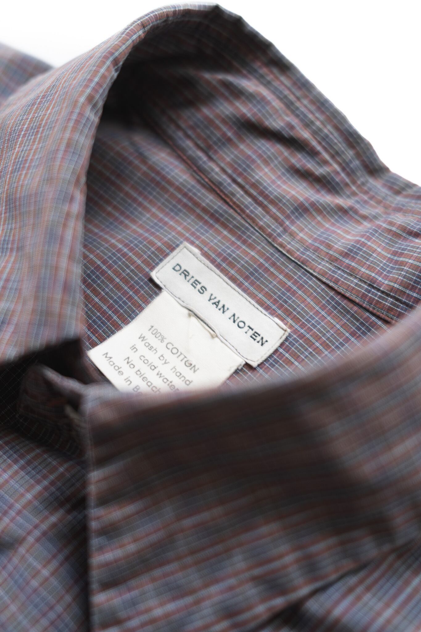 [Late 00’s] “Dries Van Noten” Shadow Plaid Cotton Shirt (Designed by Dries Van Noten)