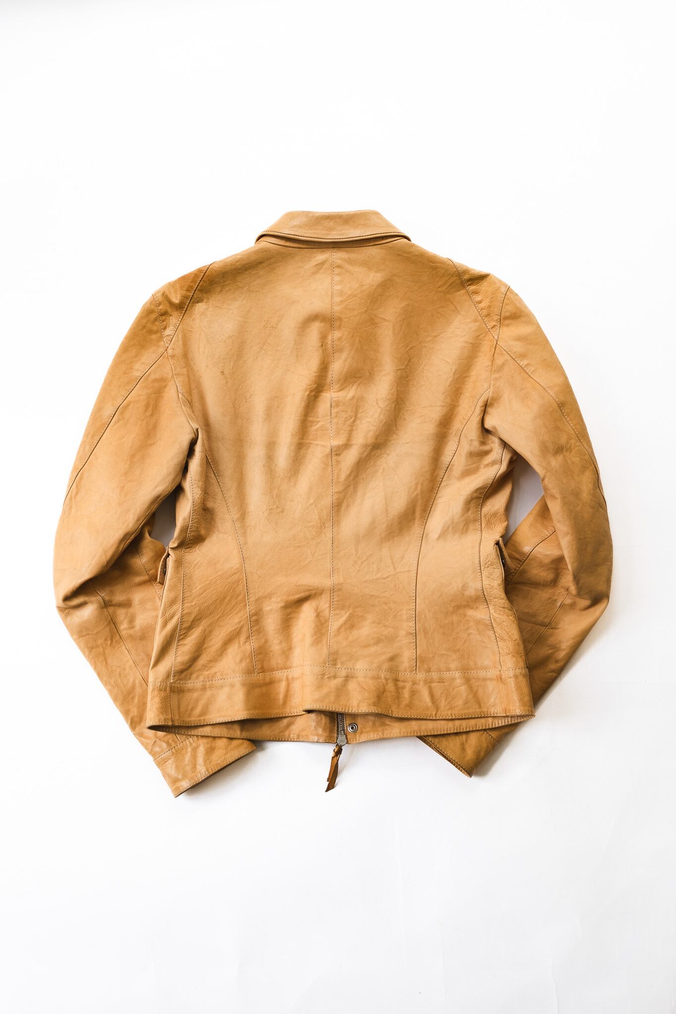 レザー特有の小傷やシワ、また変色がやや見られますが、目立ったダメージのないグッドコンディション。