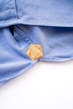 しかし、このサックスブルーのオックス生地や、胸ポケットというディティールや、ダーツの入らないたっぷりとしたウエスト・ラインなどを見ると、どうにもポロカラーを生み出した某B.Bや、世界で一番ヴィンテージが好きな彼による某R.Lをイメージしてしまうんです。
