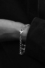 シルバー925製の本作は、重厚なオーバルリンクと繊細なラウンドチェーンを組み合わせた、コンビネーションチェーンブレスレット。ひと目で伝わる存在感と、細部まで磨き込まれた造形美が魅力の一本です。