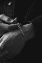 また、レザーやウールといった異素材との組み合わせもおすすめ。金属の質感が際立ち、シルバー本来の美しさがより引き出されます。腕元の一部としてだけでなく、スタイルの一部として確かに機能してくれる、そんな信頼感のあるブレスレットです。