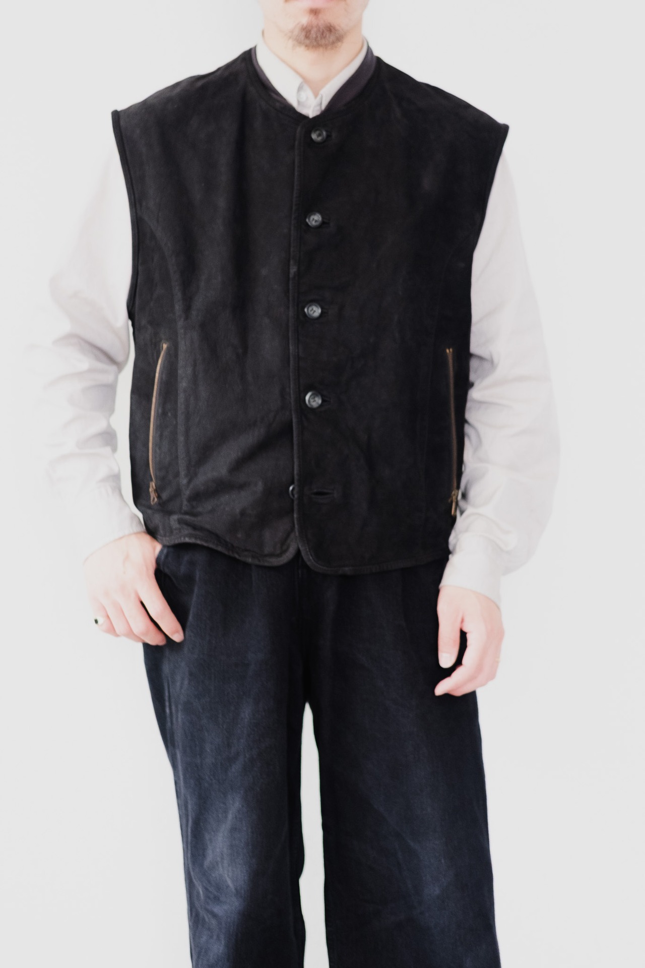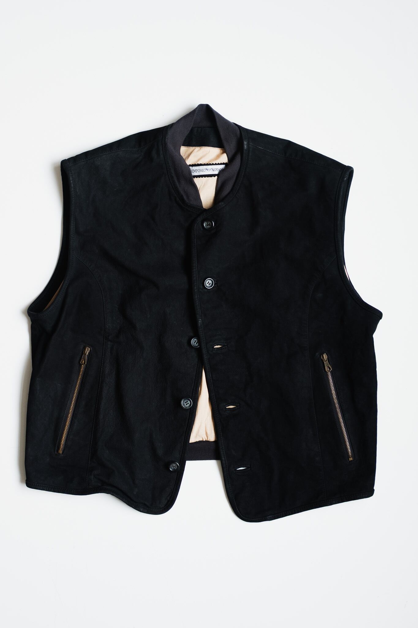 [Early 90’s] “EMPORIO ARMANI” Nubuck Calfskin No Sleeve Jacket