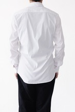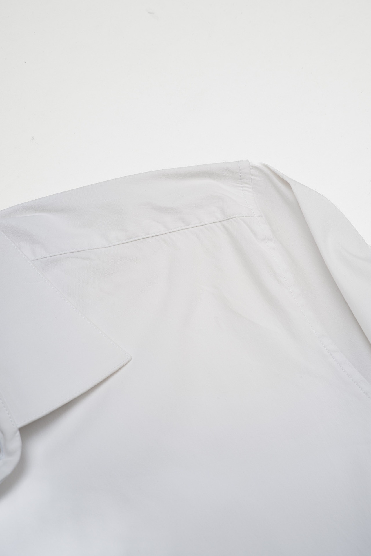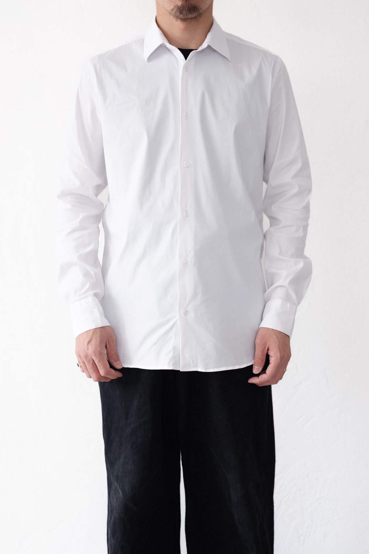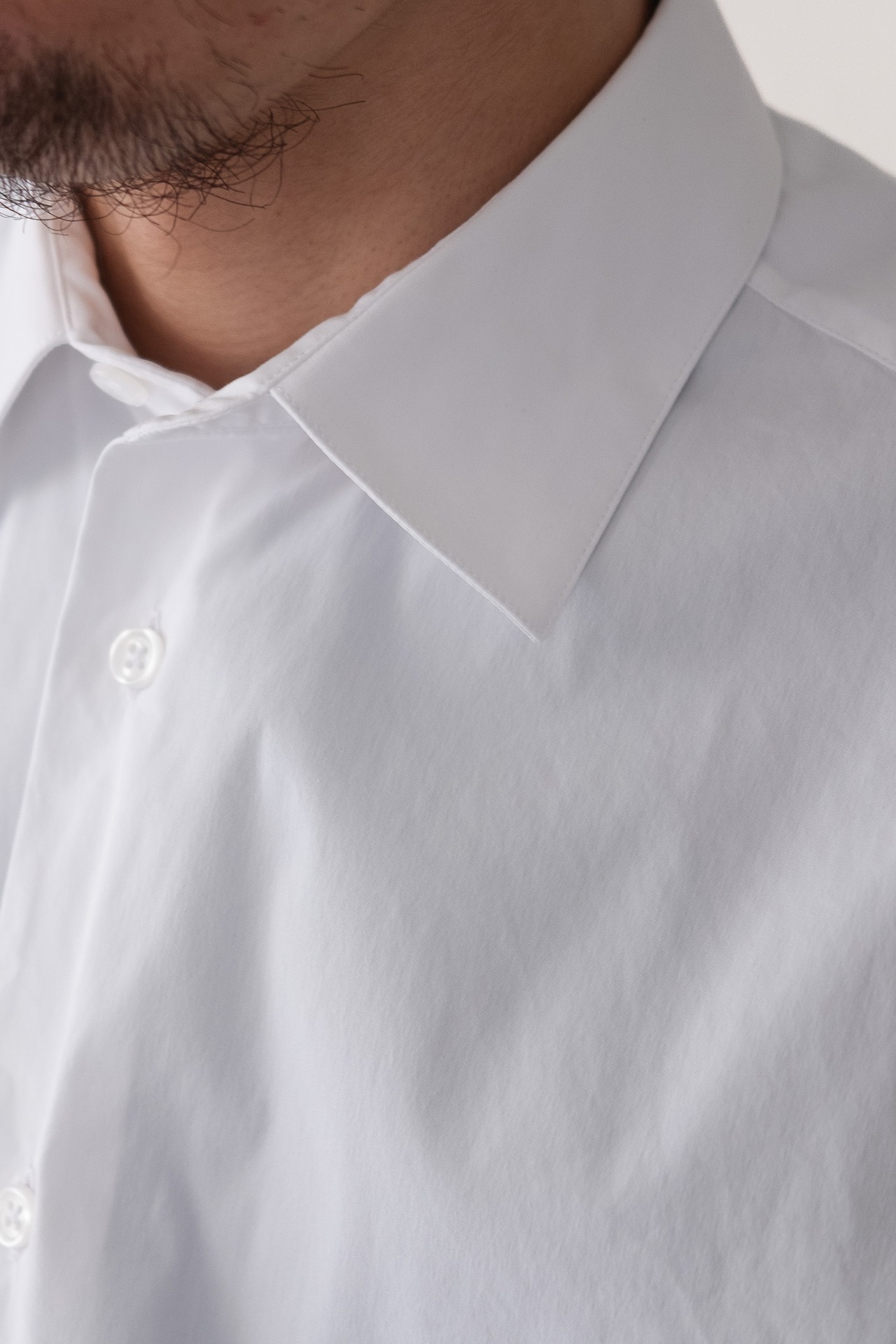 ブランドの洗練さと美学を体現する販売スタッフであるからこそ、ハリとコシのある高品質のコットン素材、緩やかなラウンドに、硬派でありながらもミニマルな襟。