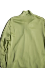 シルエットは、あくまで柔らかく、構築性を排したドレープ主体。背面にはダーツやヨークもなく、重力にまかせて自然に流れるそのラインは、着る者の動きに応じて表情を変えます。主張を抑えた造形ながら、袖を通した瞬間に確かな存在感を感じさせる。そんな“静かな説得力”を備えています。
