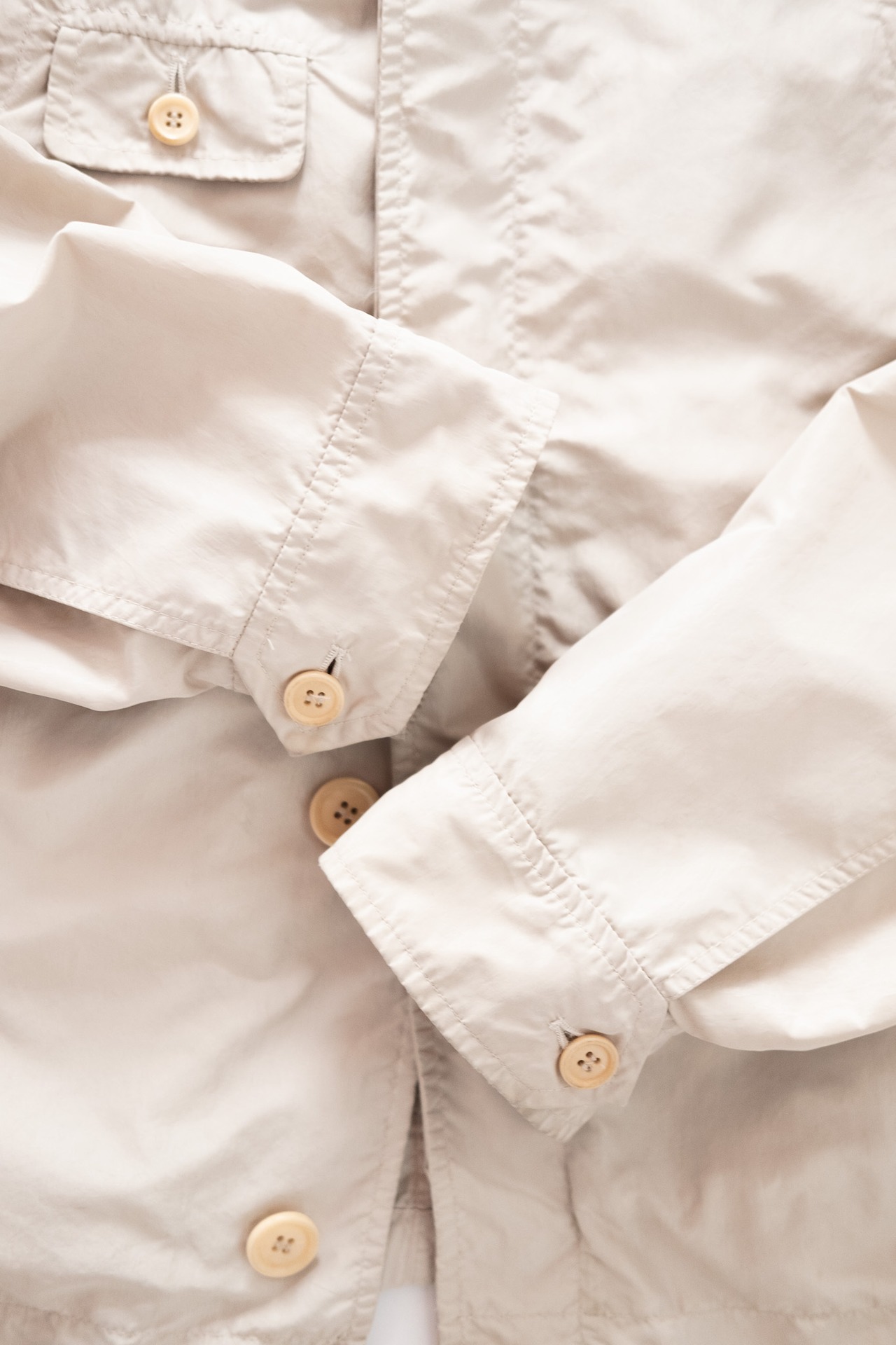 比翼仕立ての前立て、ボタンとファスナーの併用、立体裁断による袖付け、脇下のベンチレーションなど、機能面も一切の妥協がありません。