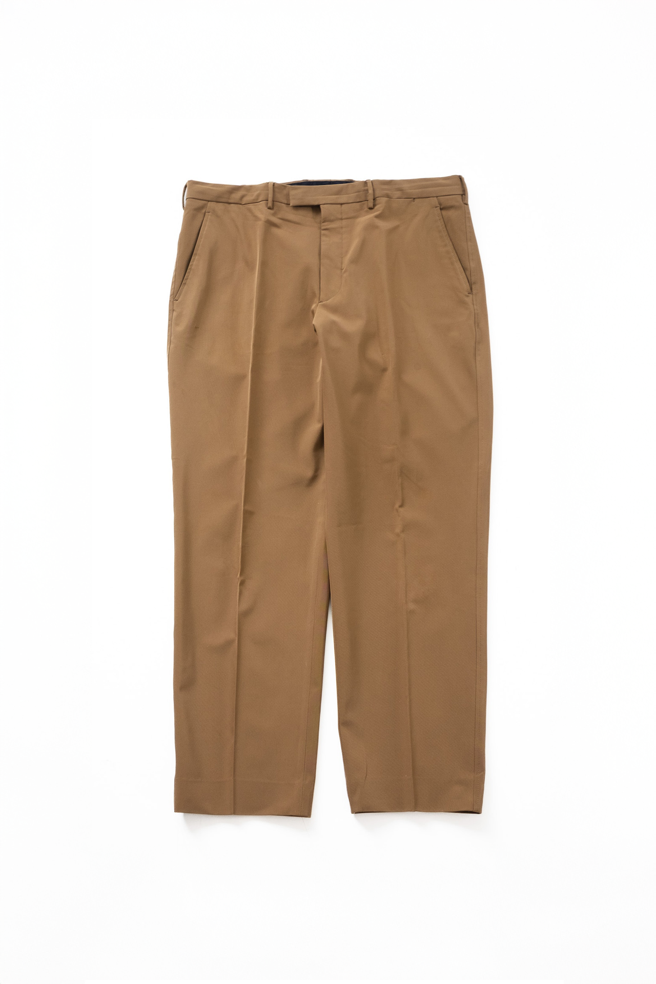 プレーンなストレートシルエットと、無駄を排した構造によって、一見すると端正なドレスパンツのようでありながら、着用感はスポーツウェアのように軽やかです。