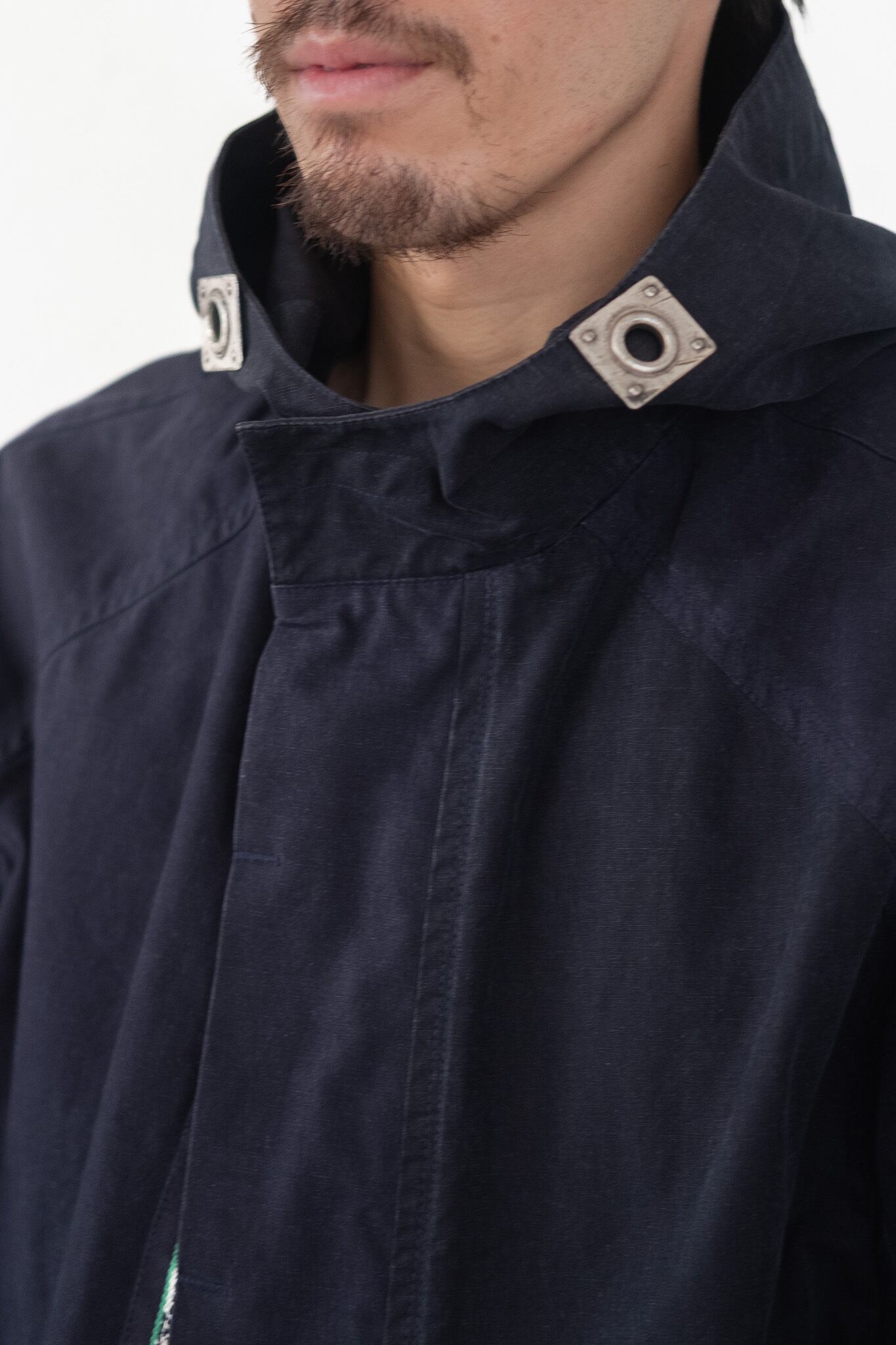 袋布は浮かないようにし、フィールドジャケットのようなミリタリーの要素を加えています。