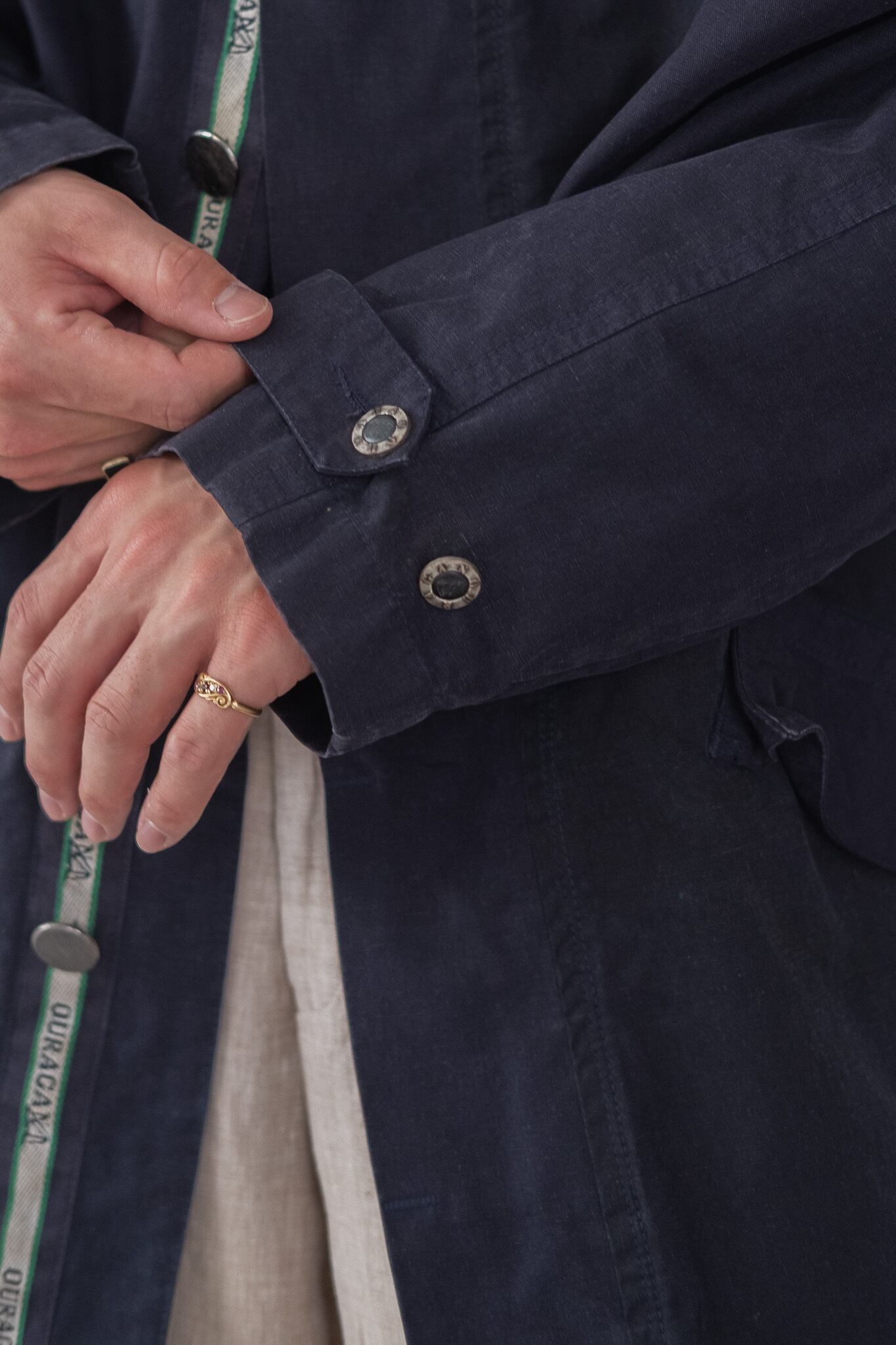 艶消し加工され、あえてヴィンテージ加工しているボタンを隠し、洗練された印象になるよう計算された作りです。