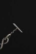 モチーフには、ロープを撚り合わせたような彫刻的なリンクが採用され、無限を描くかのようなループが連なっています。その造形が生み出す陰影は実に豊かで、光の当たり方によっては、銀が深く呼吸しているかのようにも感じられます。中空ではなくしっかりとしたソリッド仕様で、手にしたときの質感も申し分ありません。肌にのせると、ただのアクセサリーでは終わらない――そんな風格が静かに立ち上ってくるのです。