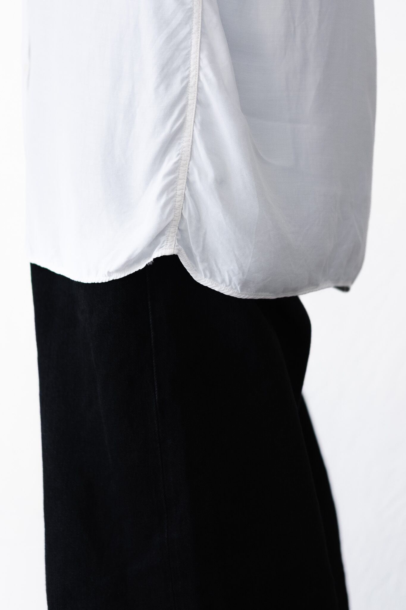 乾いたタッチではなく、むしろしっとりと吸い付くような落ち感があり、袖を通すたびに“服を着る”というより“纏う”という感覚に近い。