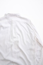 シャツとしてはやや長めの着丈に設定されており、タックインせずに羽織るだけで様になります。軽量な素材とあいまって、真夏でもアウターのように使える汎用性も魅力。