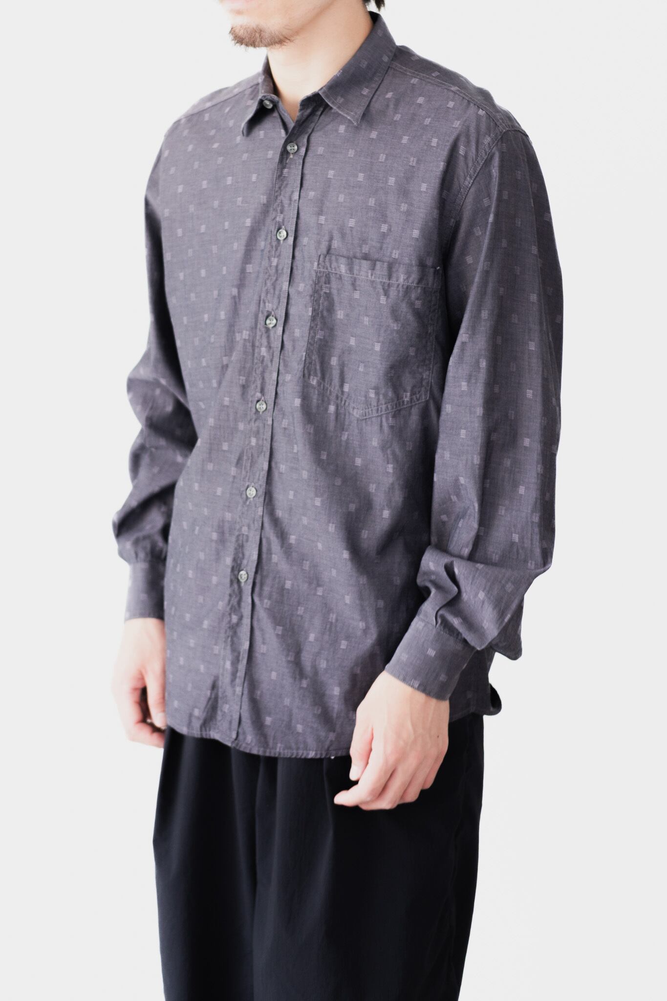 本作のシャツも、その思想が色濃く反映された一着。ドレスシャツとしてのフォーマットを踏襲しつつ、織りと色調によって“無言の個性”を漂わせています。