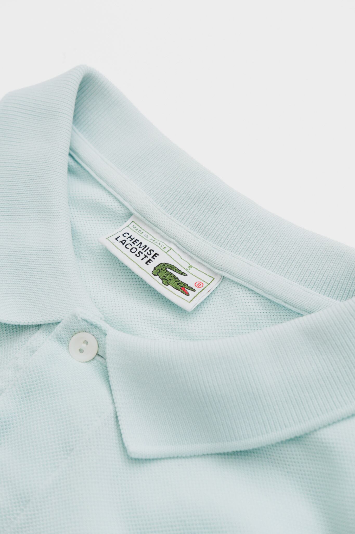 襟裏のタグに記された「CHEMISE LACOSTE」──
