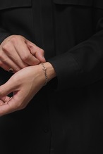 単体で身につければ、装いの主役になるのは間違いありません。しかし、ほかのシルバーアクセサリーと重ねても、その凛とした輝きは決して埋もれないのです。Tシャツの袖口から覗かせても良いですし、ジャケットの袖先からそっと光らせれば、大人の余裕を感じさせます。まさに装いの決め手になる一本です。