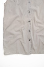 デザインは徹底的にミニマル。小ぶりな襟はクラシックなシャツの要素を残しつつも、直線的なカッティングにより現代的なニュアンスを演出。アームホールの開き具合や肩線の位置は計算され、ノースリーブでありながらもラフさに流れない緊張感を保っています。前立てはシンプルなボタン留めで、装飾性を排除し、素材とフォルムそのものが主役になる構成です。