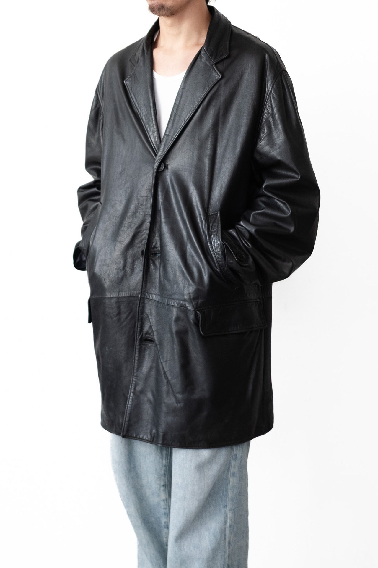 [Late 80's]"GIANNI VERSACE" Calf Leather Tailored Coat