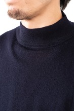 こちらのセーターはメリノウールを用いたモックネック仕様。まずこの素材感、やはり特筆すべきだと思います。メリノウールは通常のウールよりも繊維が極細で、柔らかさとしなやかさが段違い。肌に直接触れても不快感がなく、むしろ「このまま素肌で着てもいいのでは」と思わせるほどの快適さがあります。しかも保温性と通気性を兼ね備えているため、冬の寒さからしっかり守りつつ、室内では蒸れない。この辺りは天然素材ならではの奥深さでしょう。