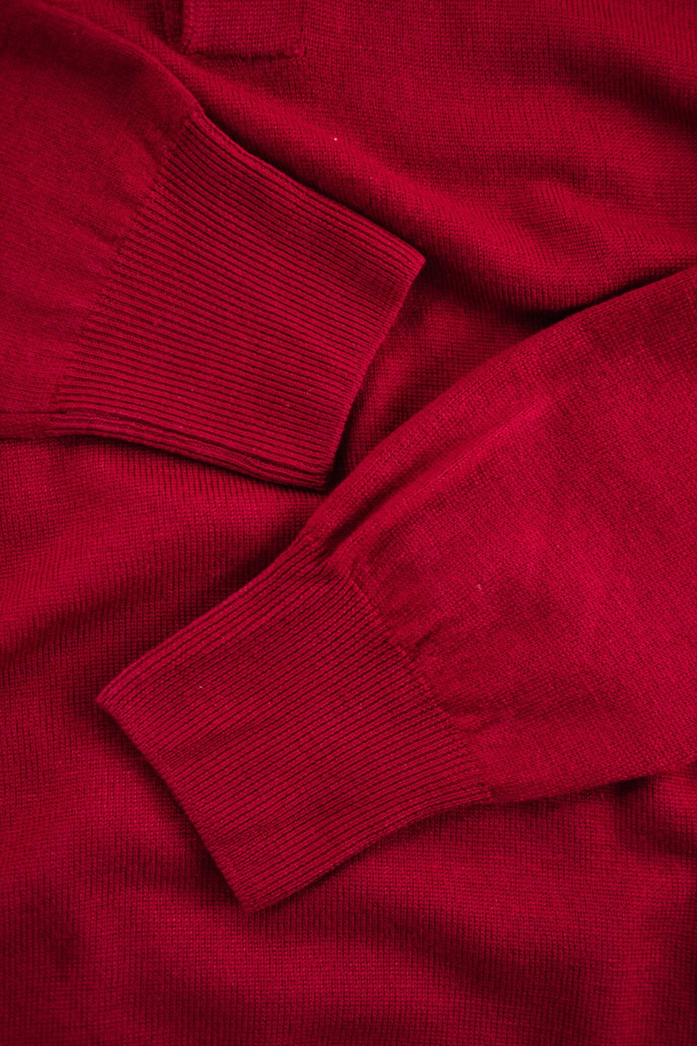 スタイリングの幅広さも見逃せません。グレーのウールスラックスと合わせれば落ち着いた知性を感じさせ、ブラックデニムに合わせれば都会的でモダンな表情に。ネイビーブレザーのインナーに差せば、王道のイタリアンスタイルが完成します。足元はレザーシューズで上品にまとめるのも良いですし、ホワイトスニーカーで軽快に振っても成立する。強烈な赤でありながら、あらゆる組み合わせに応えてくれる柔軟性の高さは特筆すべきでしょう。
