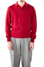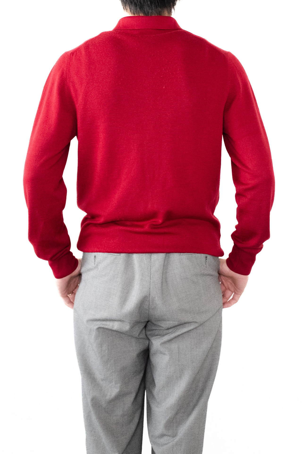 Gran Sassoのニットは、声高に「ラグジュアリー」を語るものではありません。けれども袖を通せば確かに伝わる品格がある。この赤のニットポロは、日常に鮮やかな彩りを添えつつも決して浮つかず、むしろ落ち着きと余裕を感じさせます。イタリアの色彩感覚と誠実なクラフツマンシップ、その両方を一度に味わえる一着です。