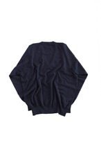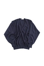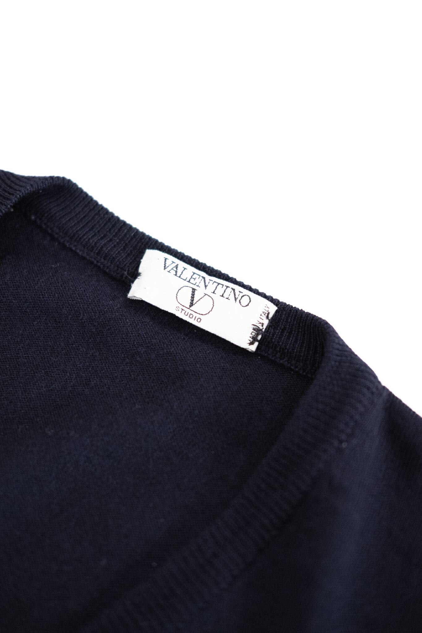 その世界観の中でも、より日常に寄り添う存在として展開されていたのが「VALENTINO STUDIO」ラインです。本作はそのコレクションから生まれた、ネイビーのVネックニット。控えめな佇まいの中に、90年代の空気感とイタリアらしい上質さが凝縮された一着です。