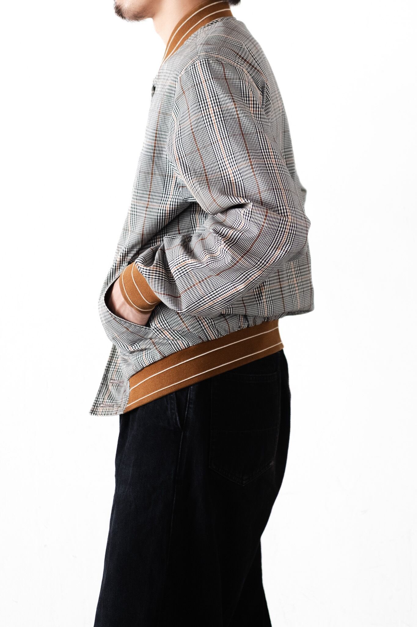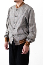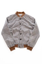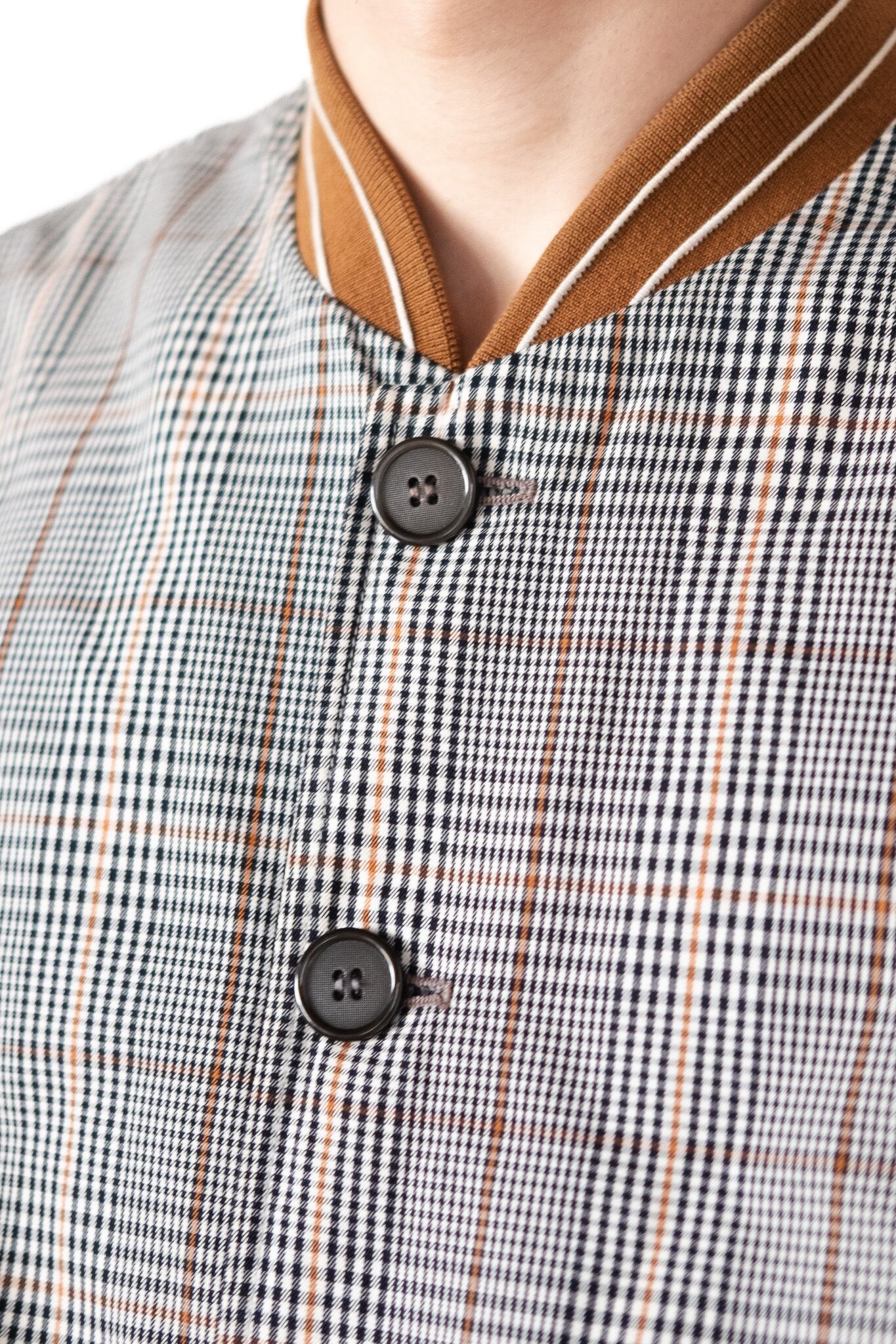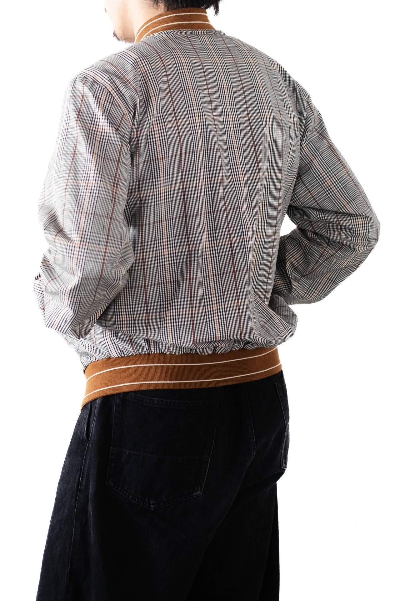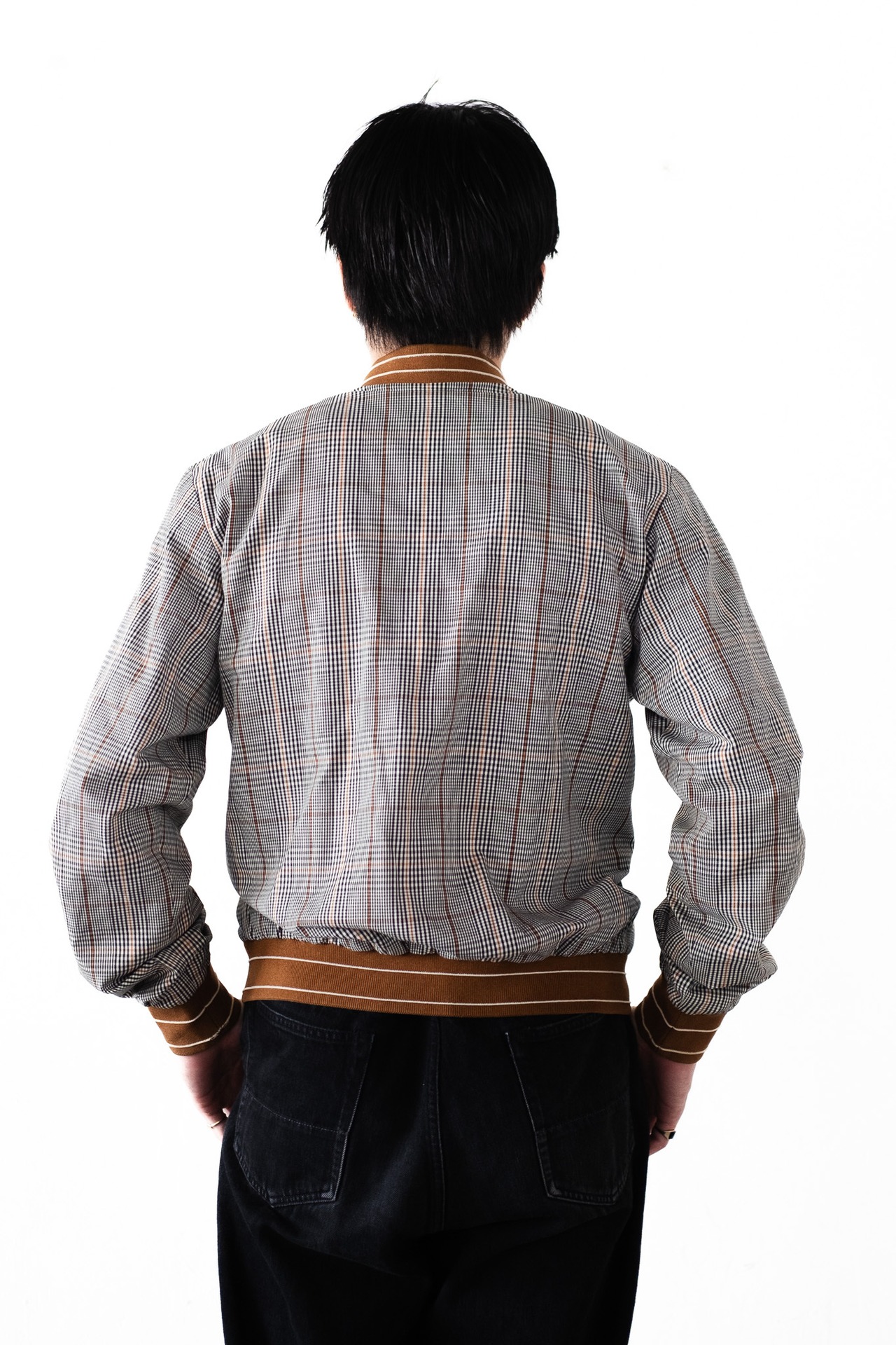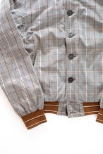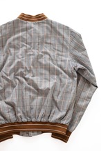 表地にはクラシックなグレンチェックを採用しながらも、仕立てはブルゾン型。