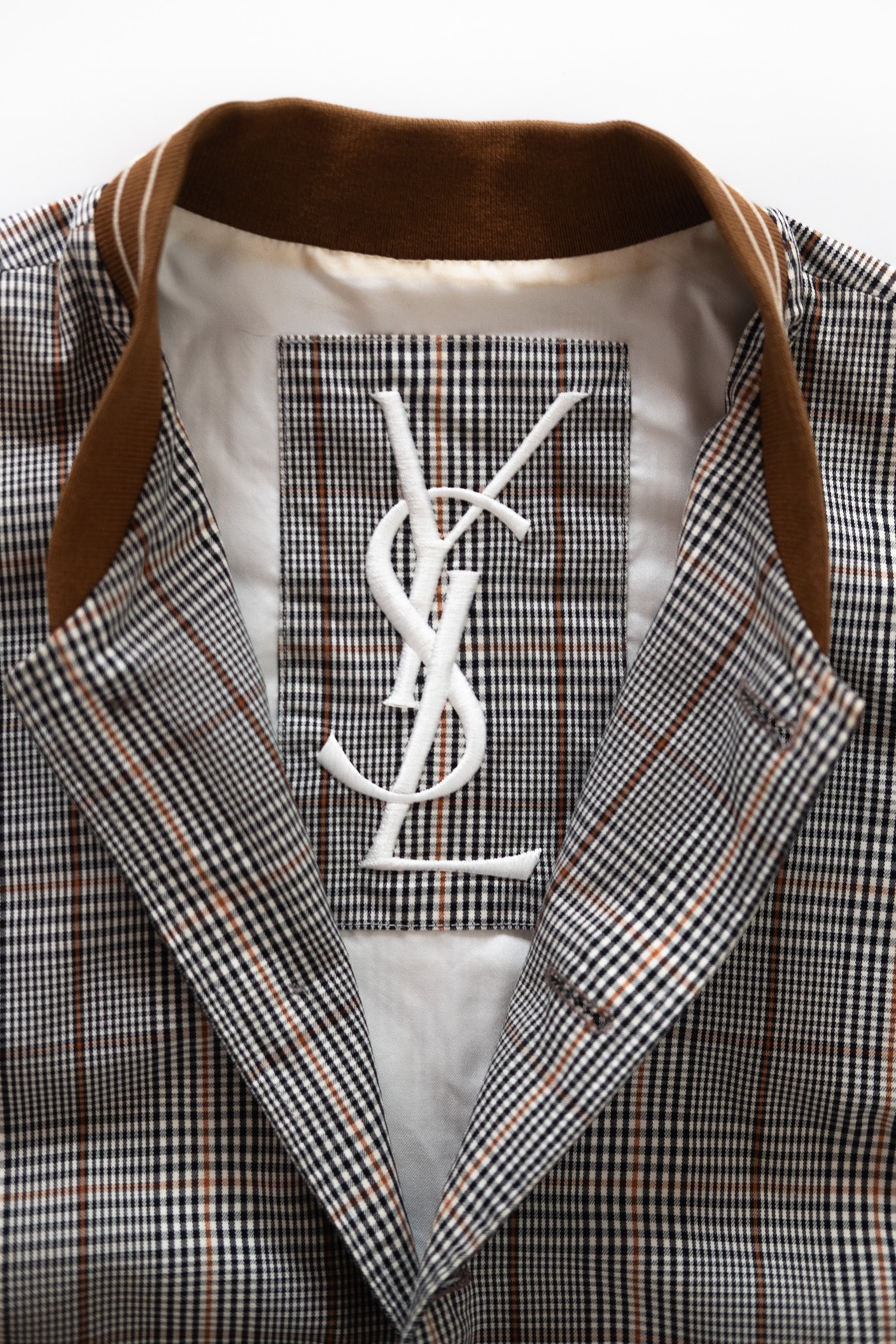 [Late 90’s–Early 00’s] “Yves Saint Laurent rive gauche” Brown Glen Check Varsity Jacket (Designed by Tom Ford)