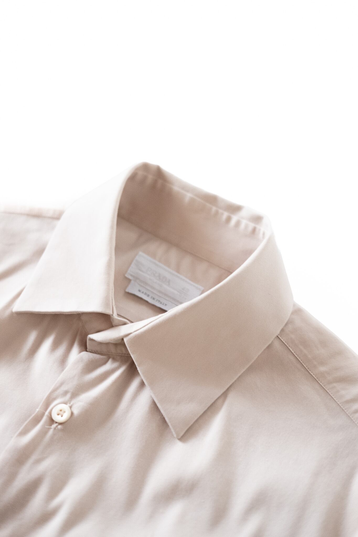 [Mid 2000’s] "PRADA" Cotton-Stretch Dress Shirt -Beige-(Designed by Miuccia Prada)