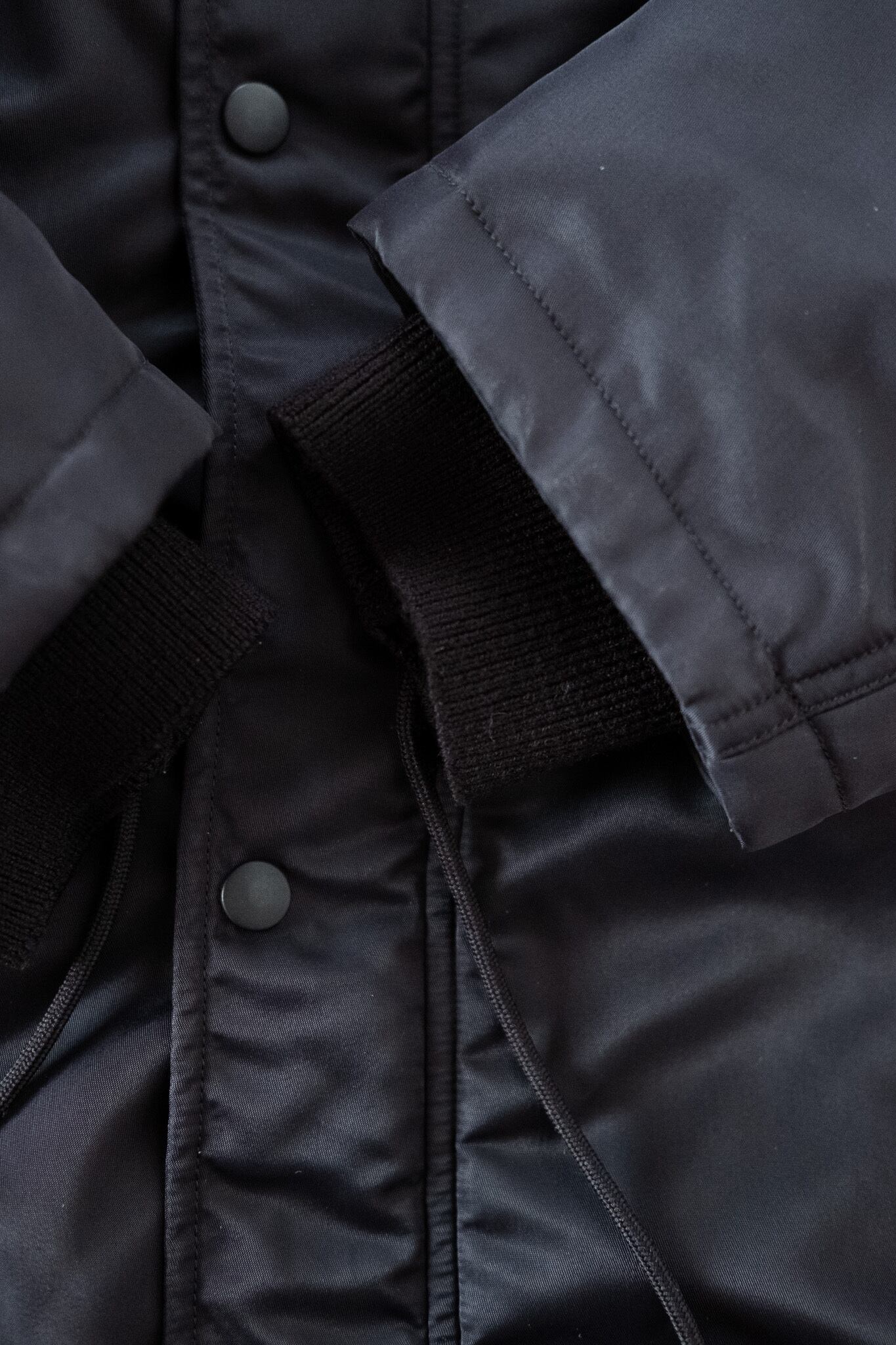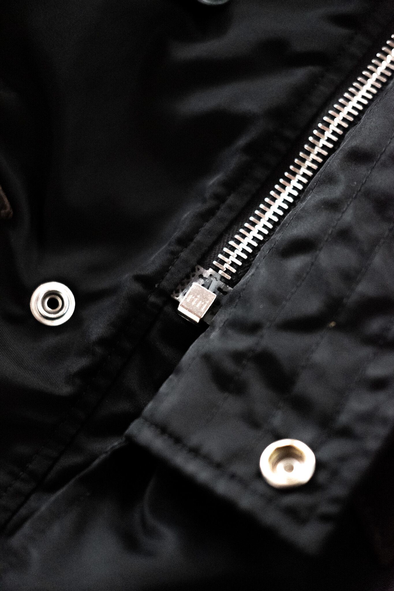 M-51型の特徴である構造や、ラグランスリーブの袖付け、ウエストのドローコードといった実用的ディテールは踏襲しつつ、全体のシルエットはやや短丈に設定され、よりモダンな印象に。ミリタリー特有の重量感を取り払い、より日常的な軽快さを得ています。