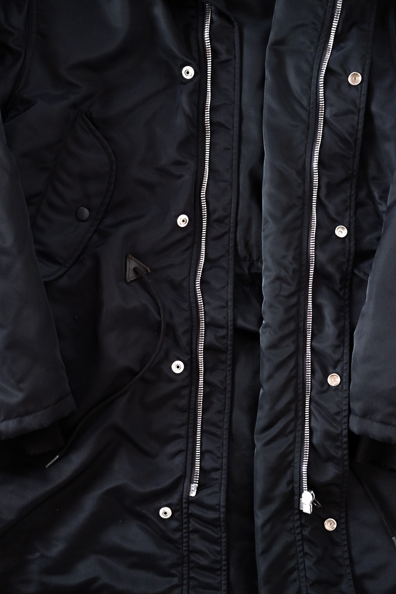 本作は、その中でも代表的なM-51パーカの構造を再構築し、ミウッチャ特有の「ずらし」の美学を感じさせる一着です。