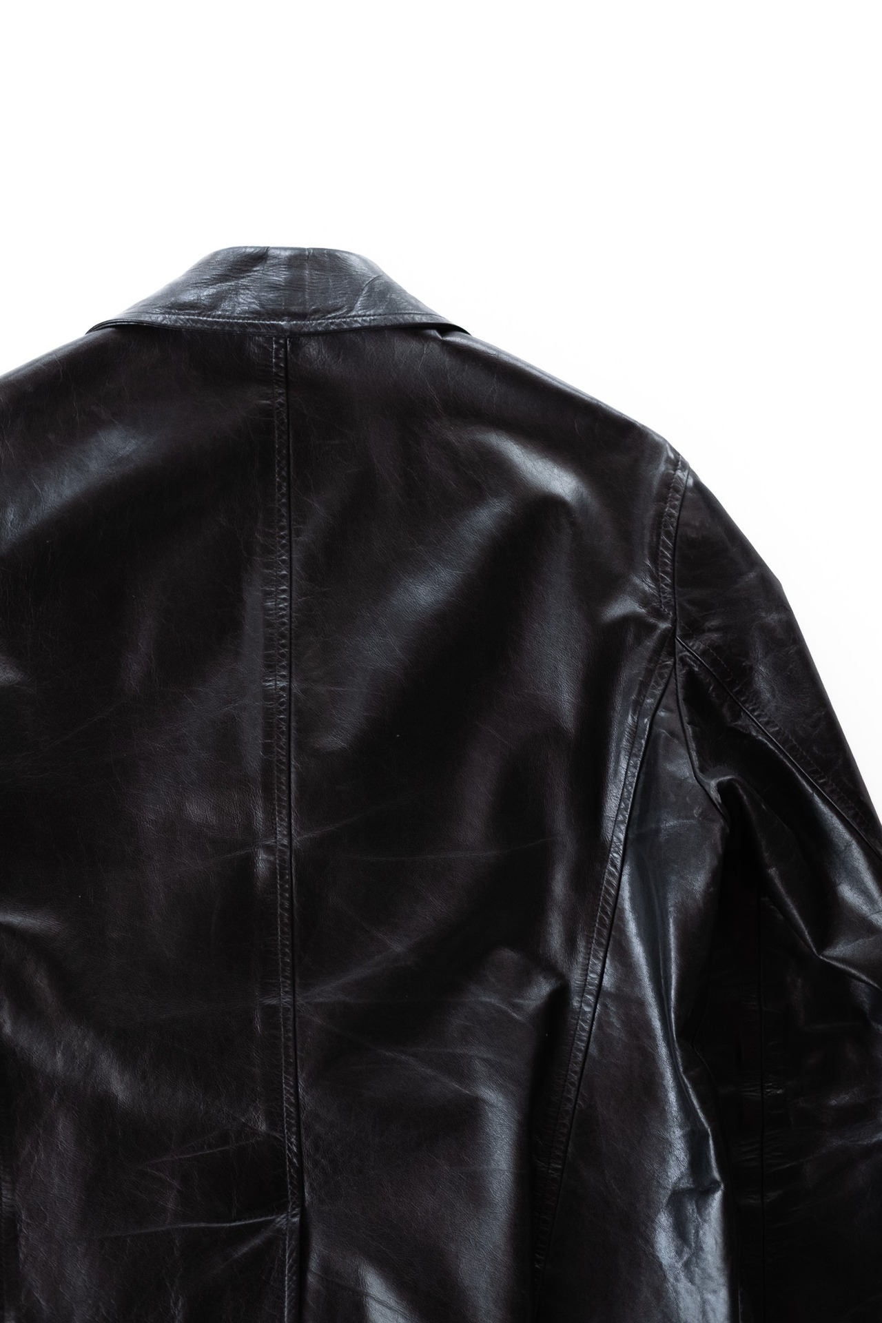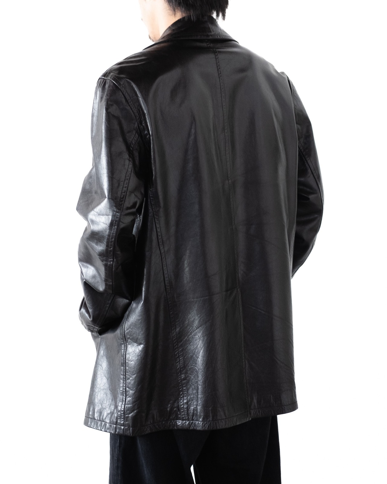 やや厚手のレザーを活かした立体的な構造と、控えめなウエストシェイプによるボックスシルエットが特徴的だ。
