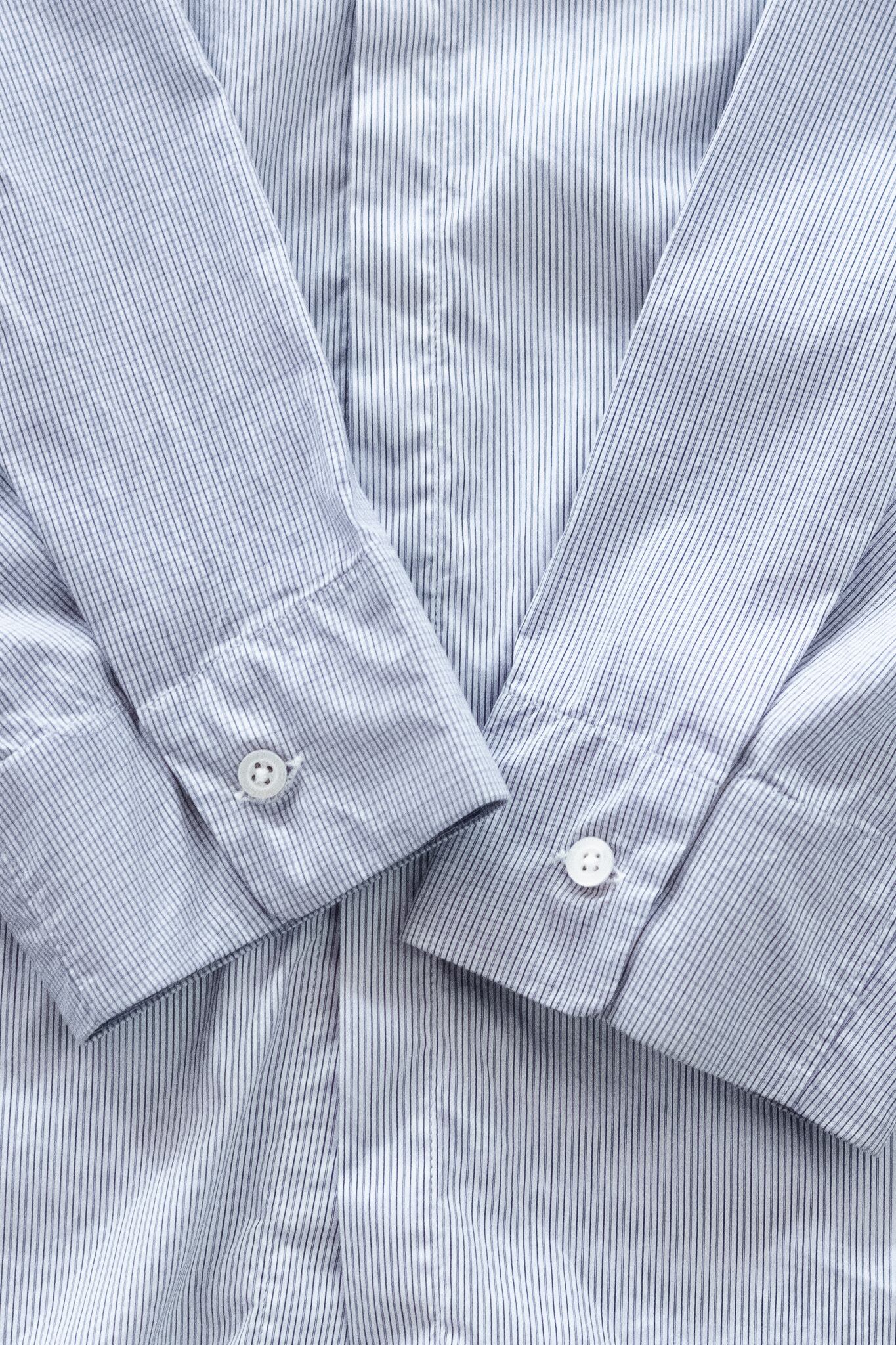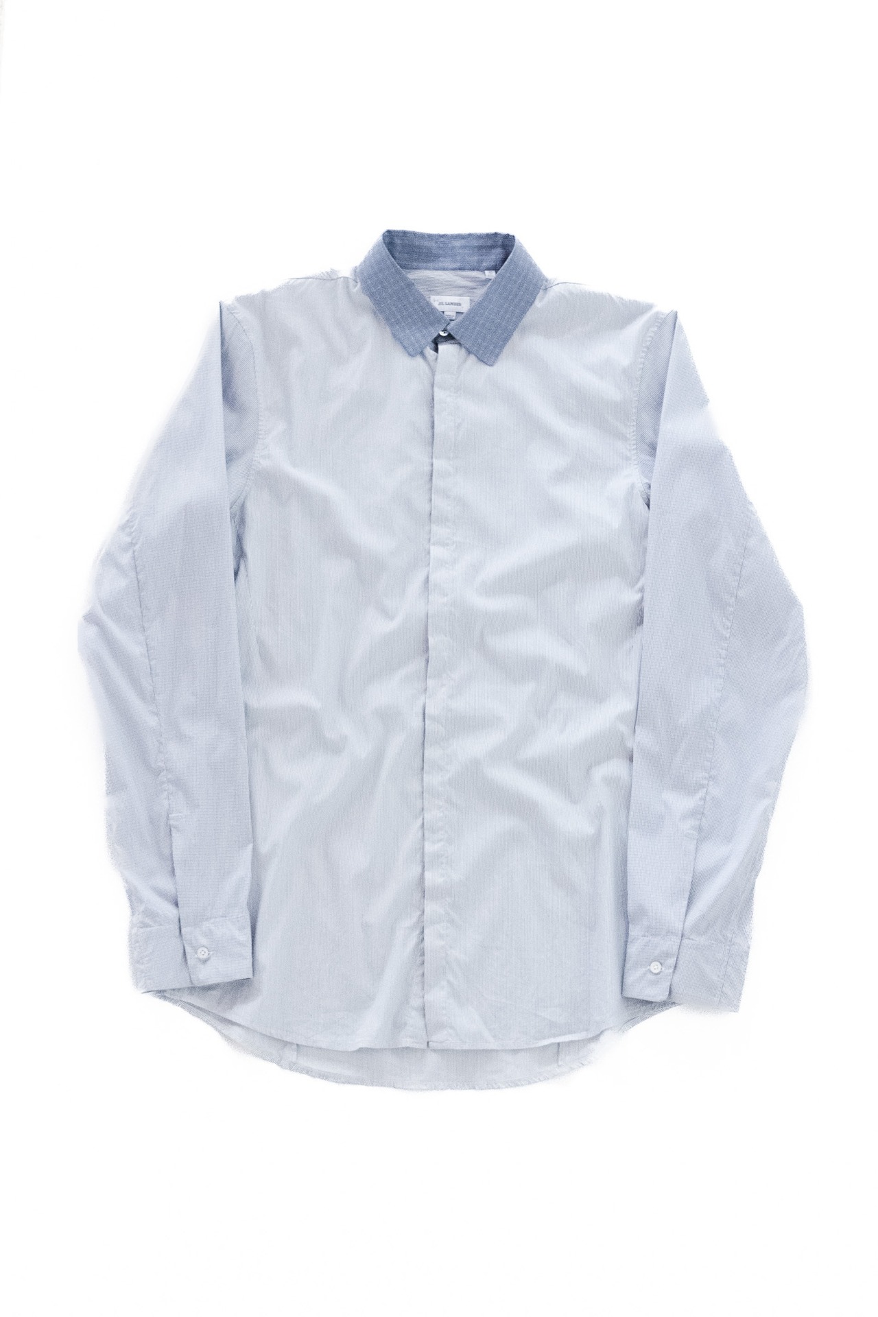 比翼仕立てのフロントは、ボタンの存在感をミニマルに抑え、全体の表情を極めてクリーンに。