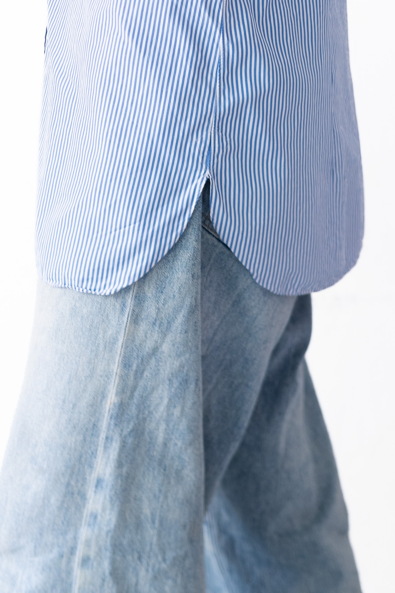 [80’s~] ”Charvet” BISPOKE Blue & White Stripe Poplin Shirt (made in France)