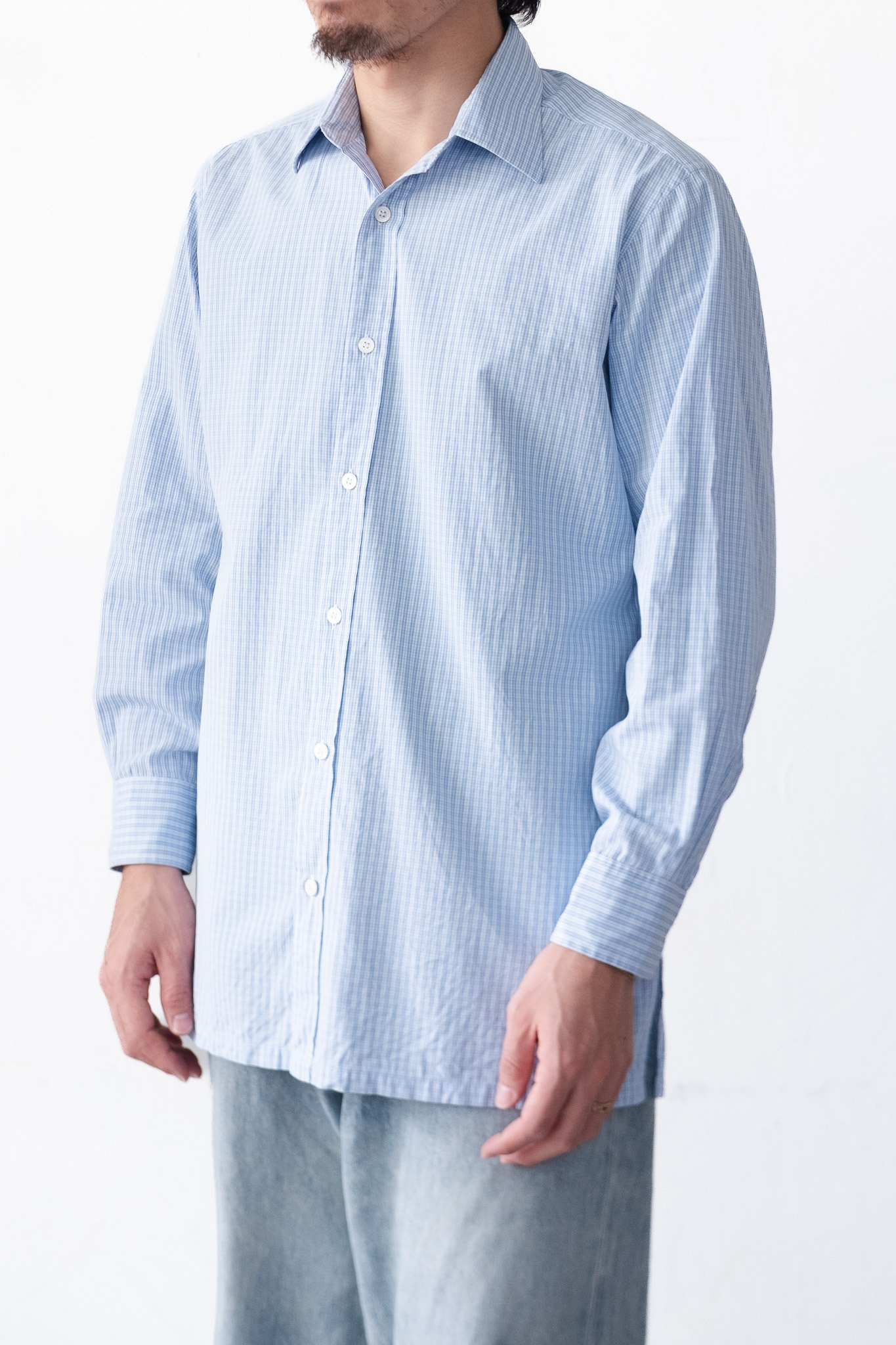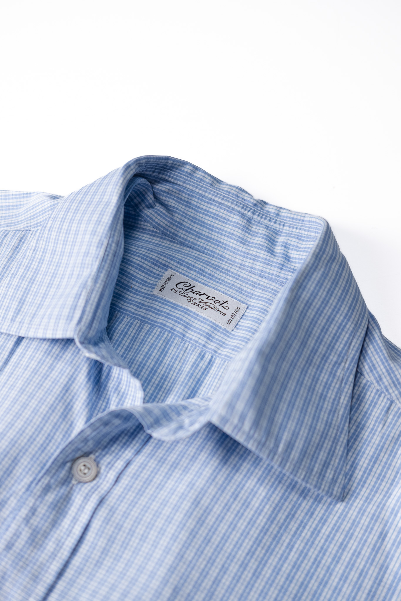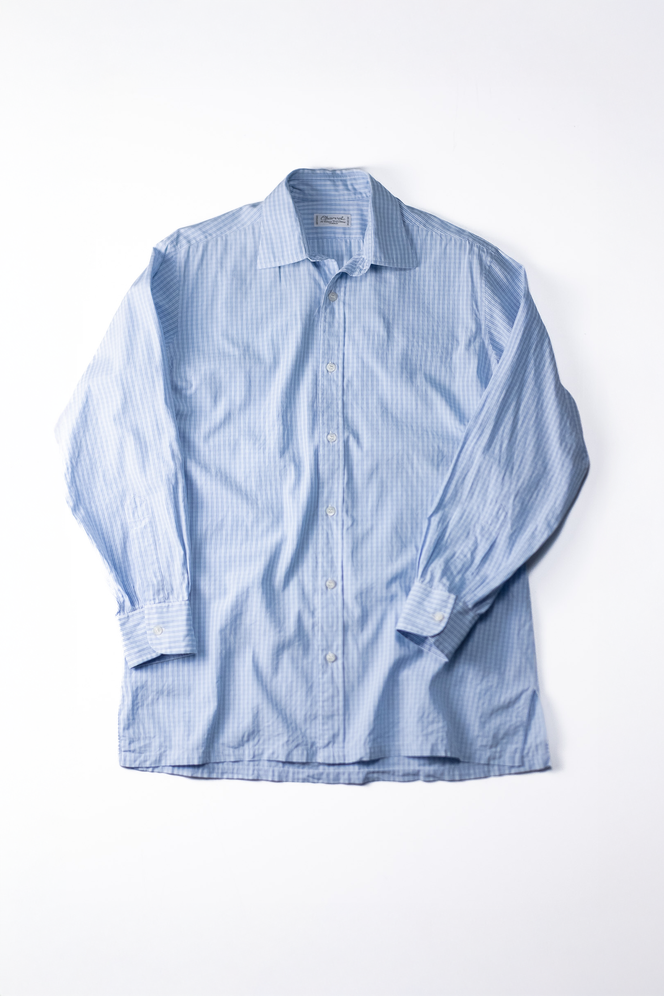 [2006] ”Charvet” BISPOKE Blue Micro Gingham Cotton Poplin Shirt (made in France)