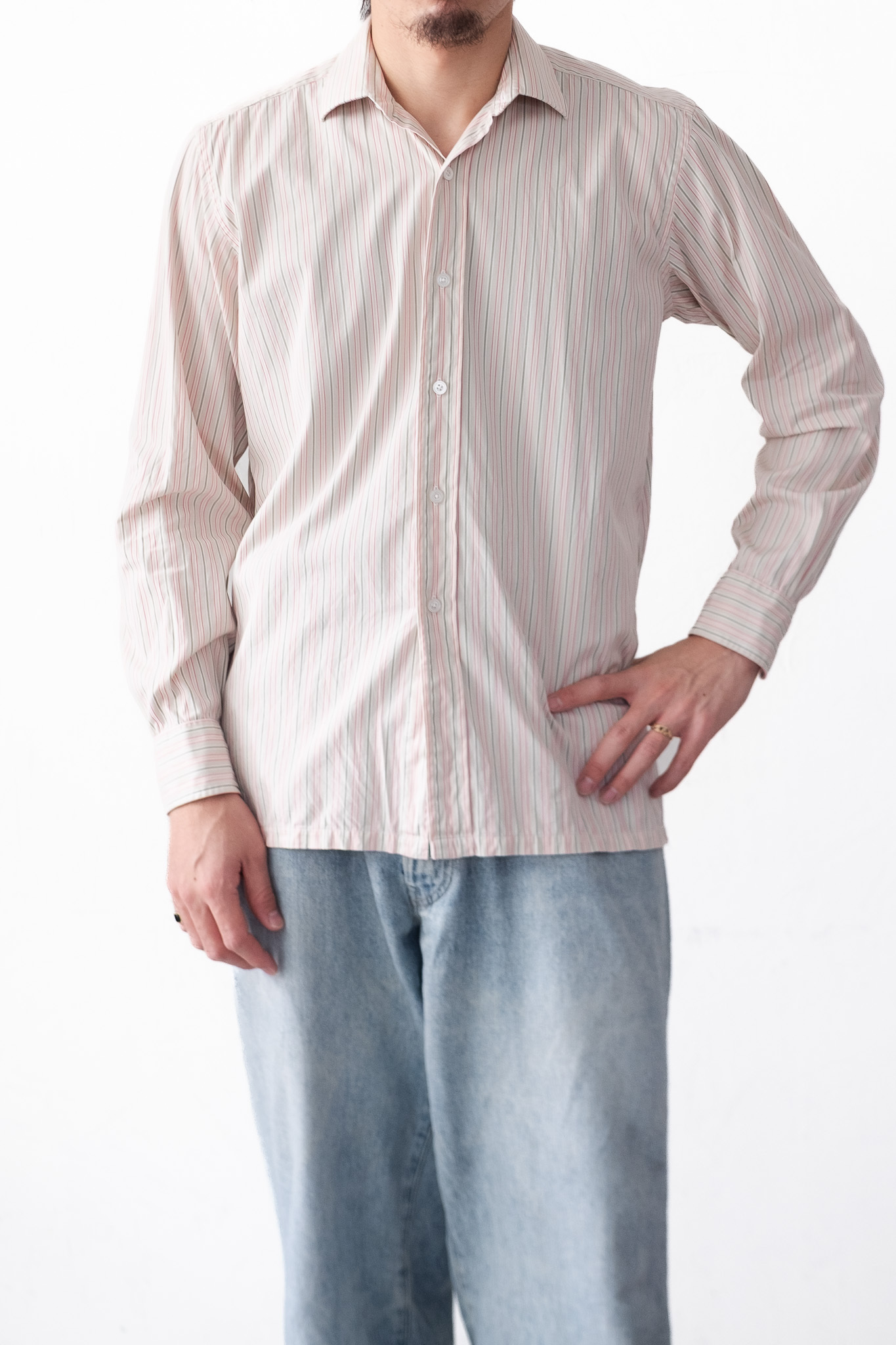 [1996] ”Charvet” BISPOKE Pastel Stripe Cotton Shirt (made in France)