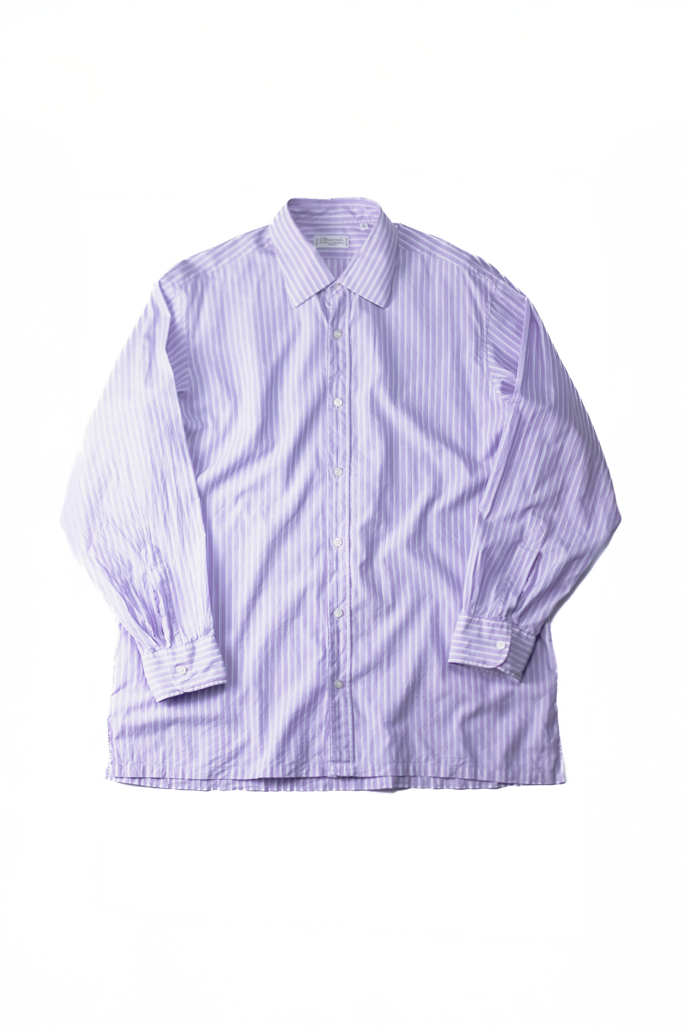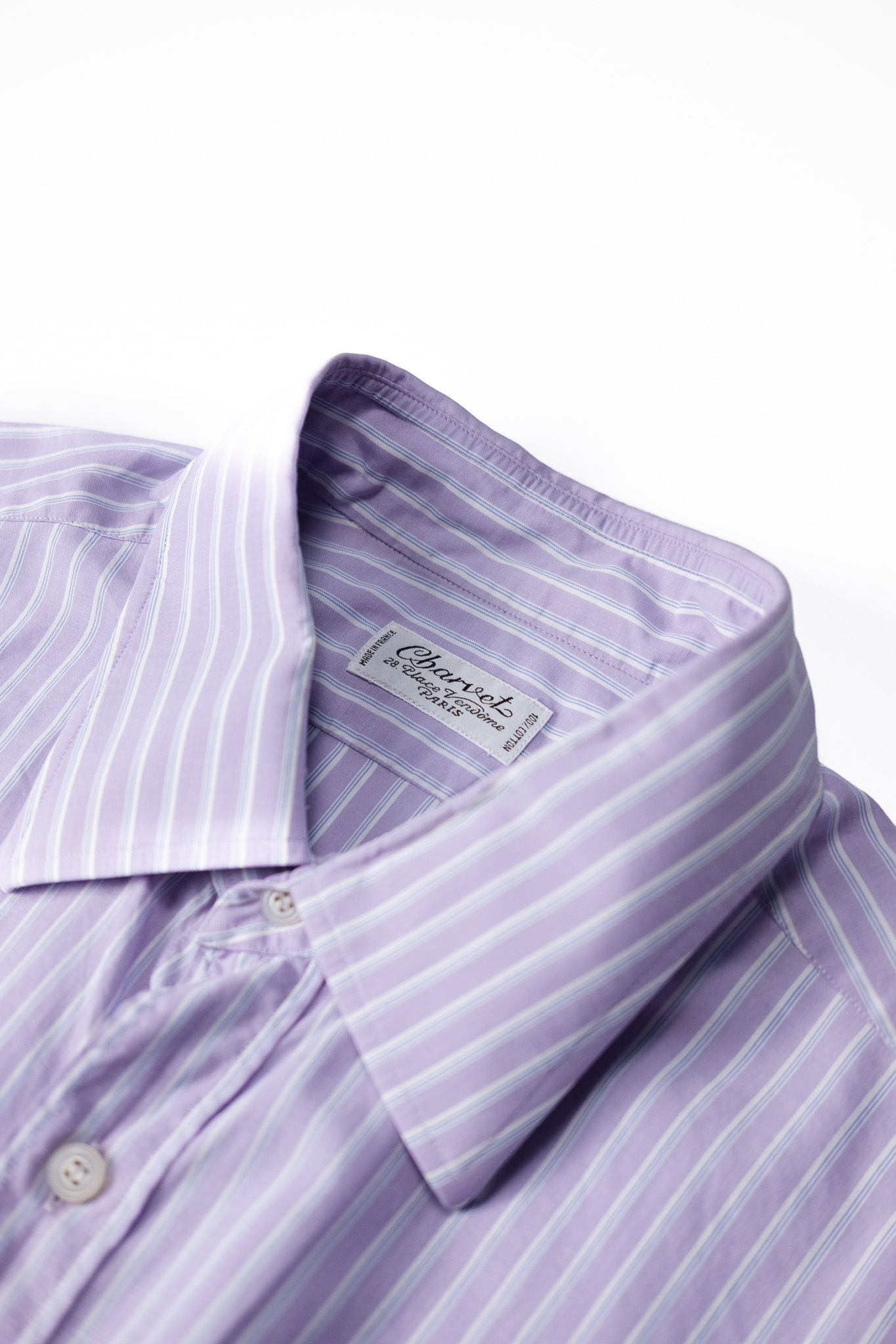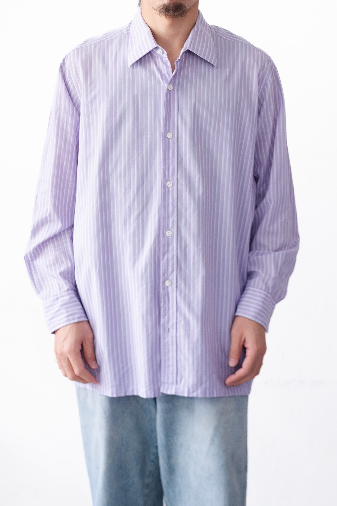 [80's 〜] ”Charvet” Cotton Poplin Lavender × White Stripe Shirt (made in France)