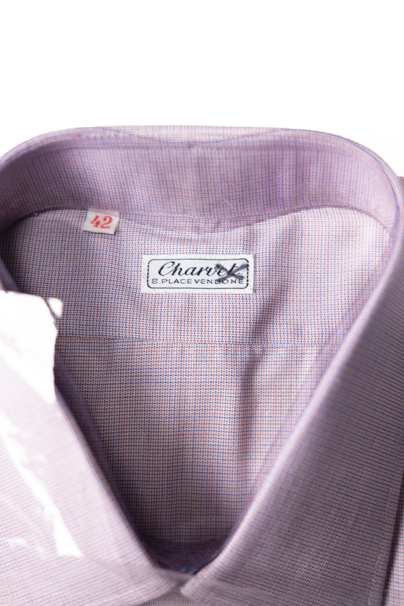 [〜80's] ”Charvet” Lavender Micro Check Cotton Shirt -Dead Stock- (made in France)