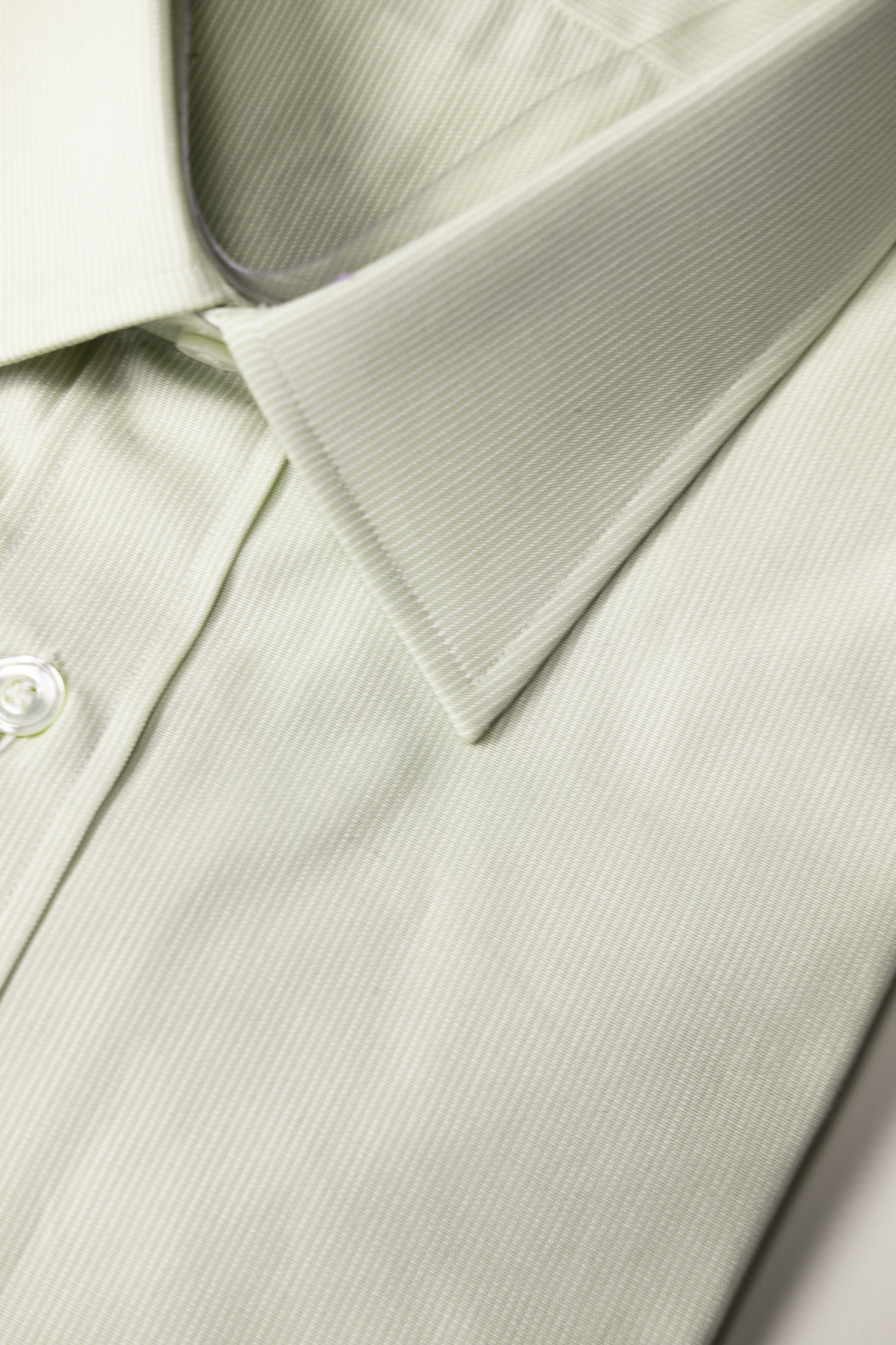 生地は、淡いピスタチオグリーンのピンストライプコットン。