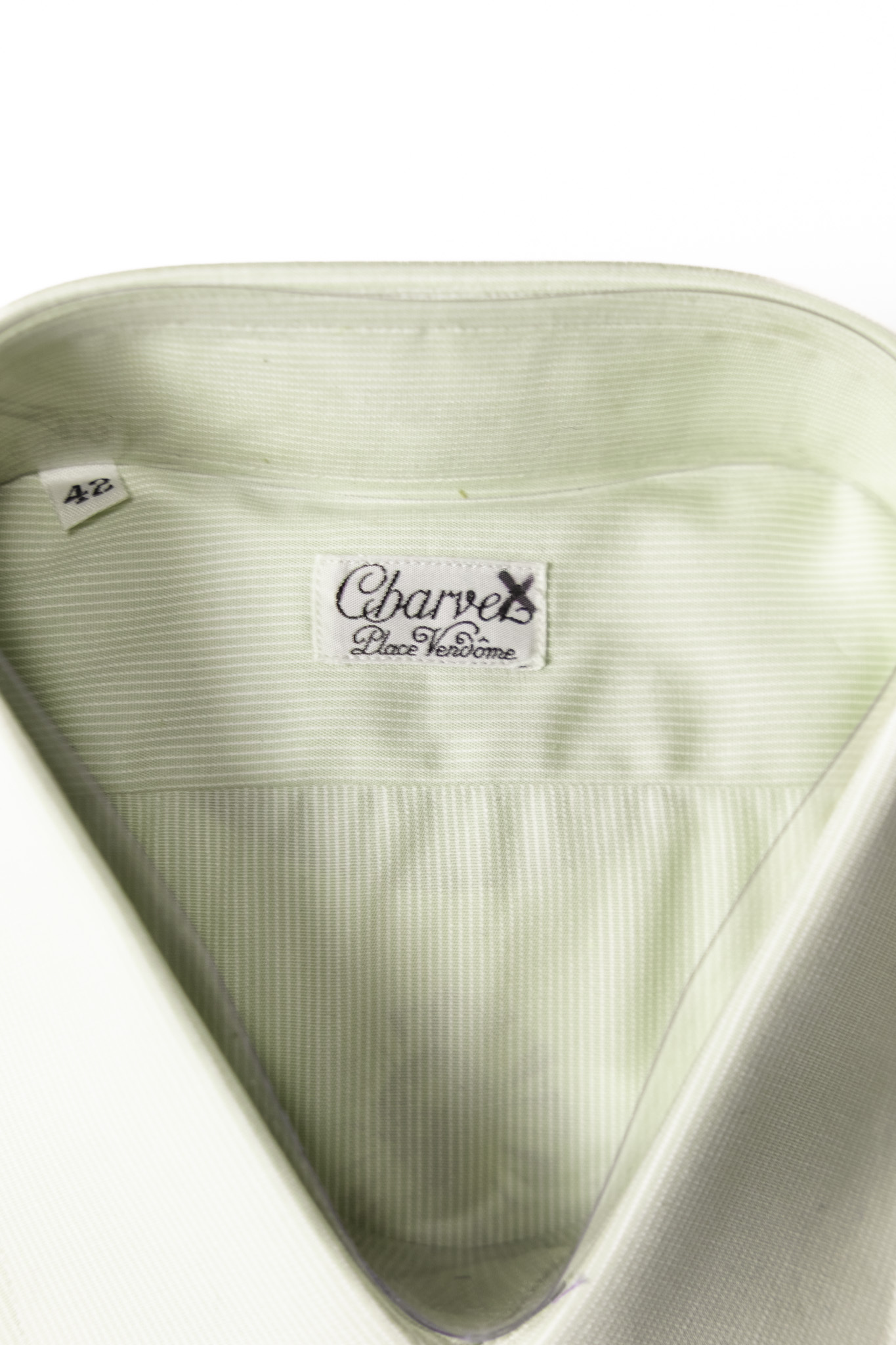 [〜80's] ”Charvet” Pistachio Green Pinstripe Cotton Shirt -Dead Stock- (made in France)