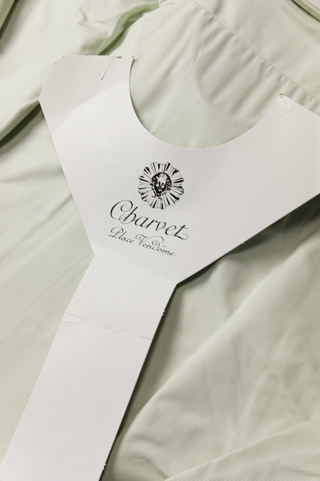 現行とは異なるタグの書体「Charvet Place Vendôme」が縫い付けられた、70〜80年代初頭の古い仕様。シャツがまだ完全に“アトリエの手”によって作られていた時代の名残を留めています。