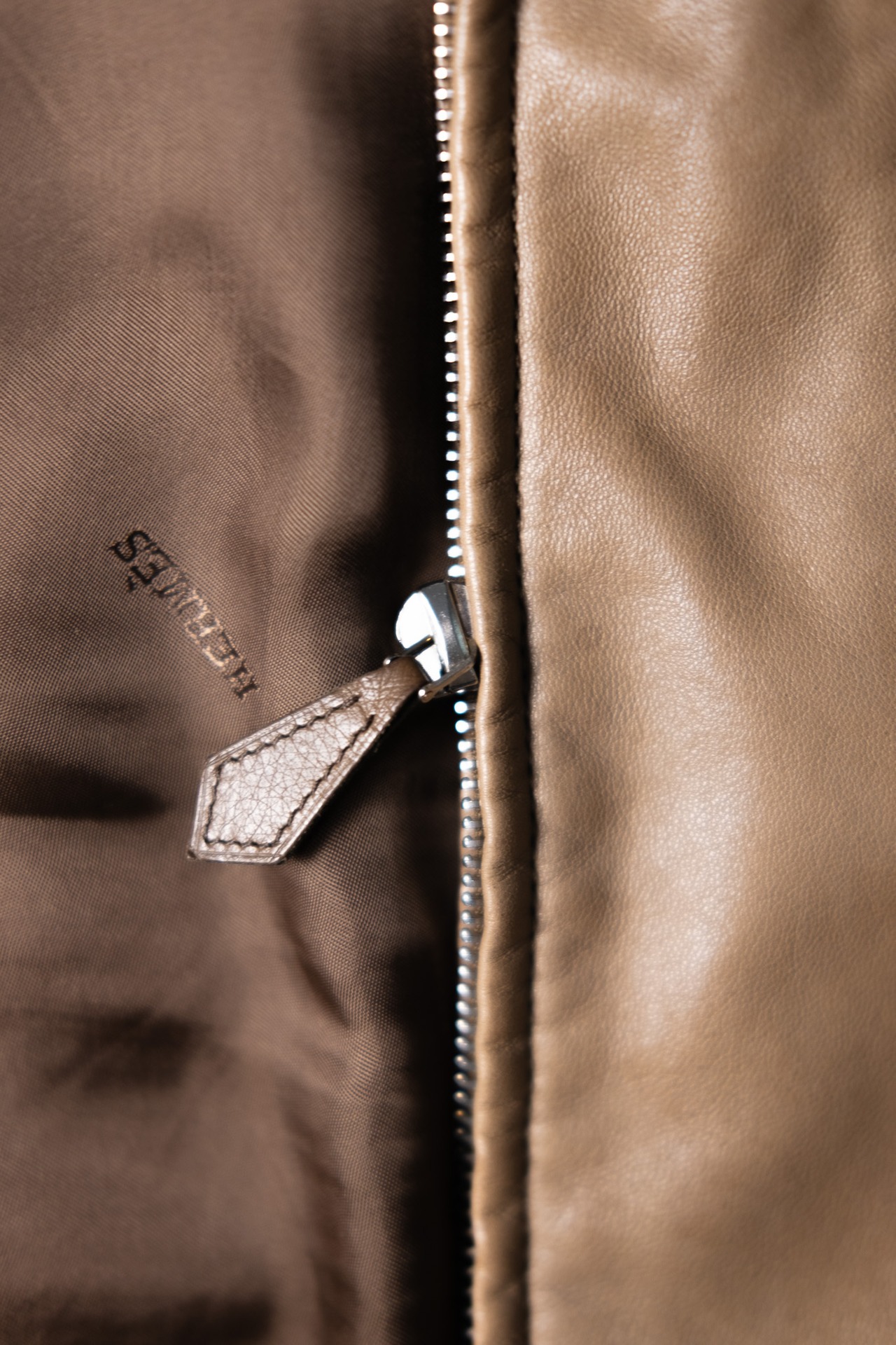 裏地にはHermèsロゴのジャカード織が施されたベンベルグレーヨンを使用。