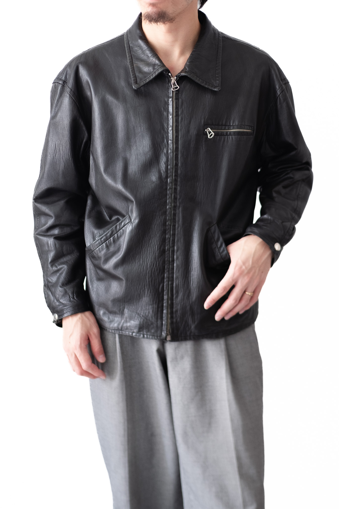このジャケットは、革という素材を“構造ではなく感情の表現”として扱った作品です。