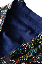 黒のベルベット地に、極小のカラービーズを一粒ずつ縫い留めるように配置。