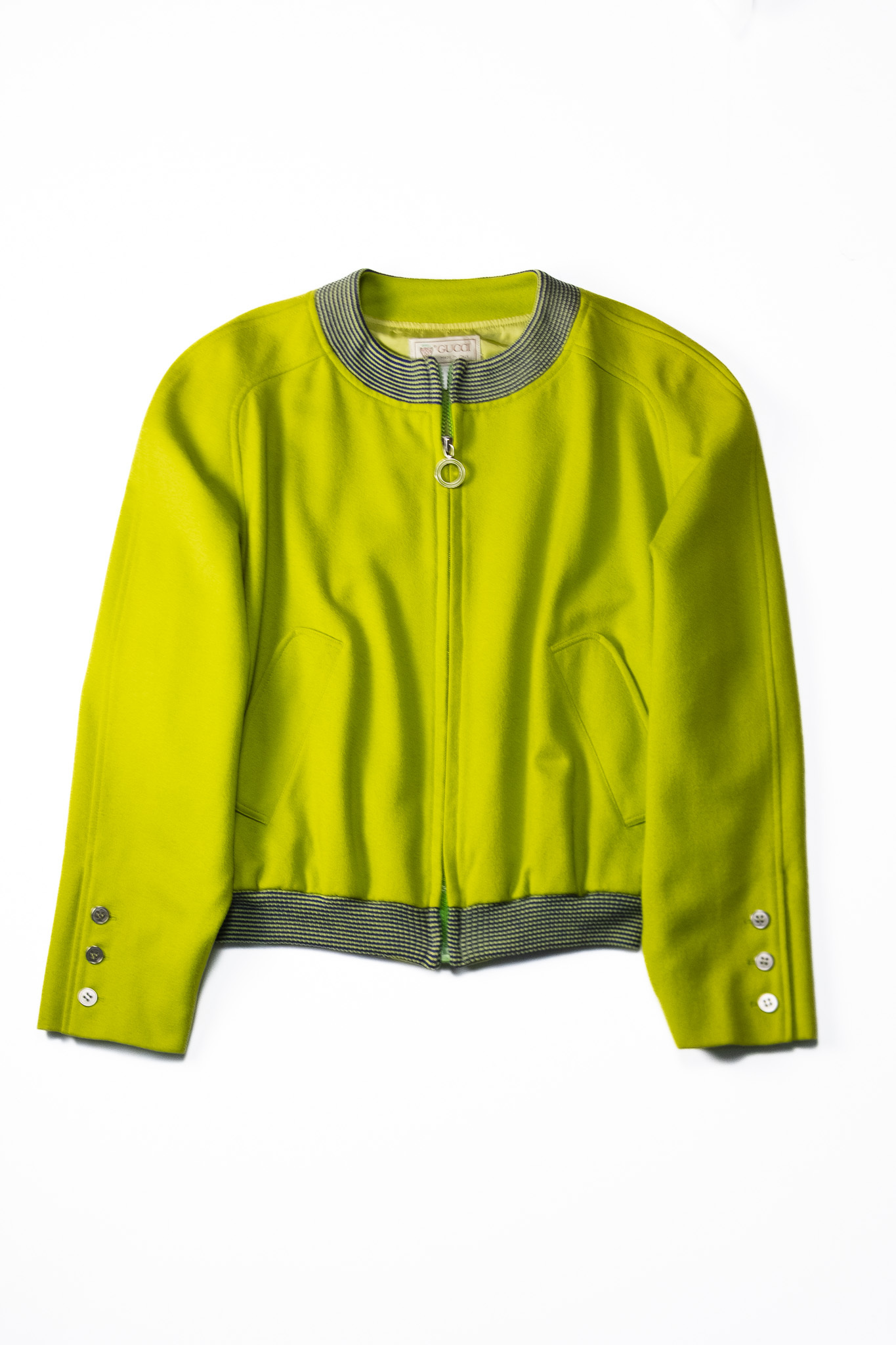 [Late 1980’s]“GUCCI” Wool-Cashmere Structured Bomber Jacket with Knitted Collar (Made in Italy)