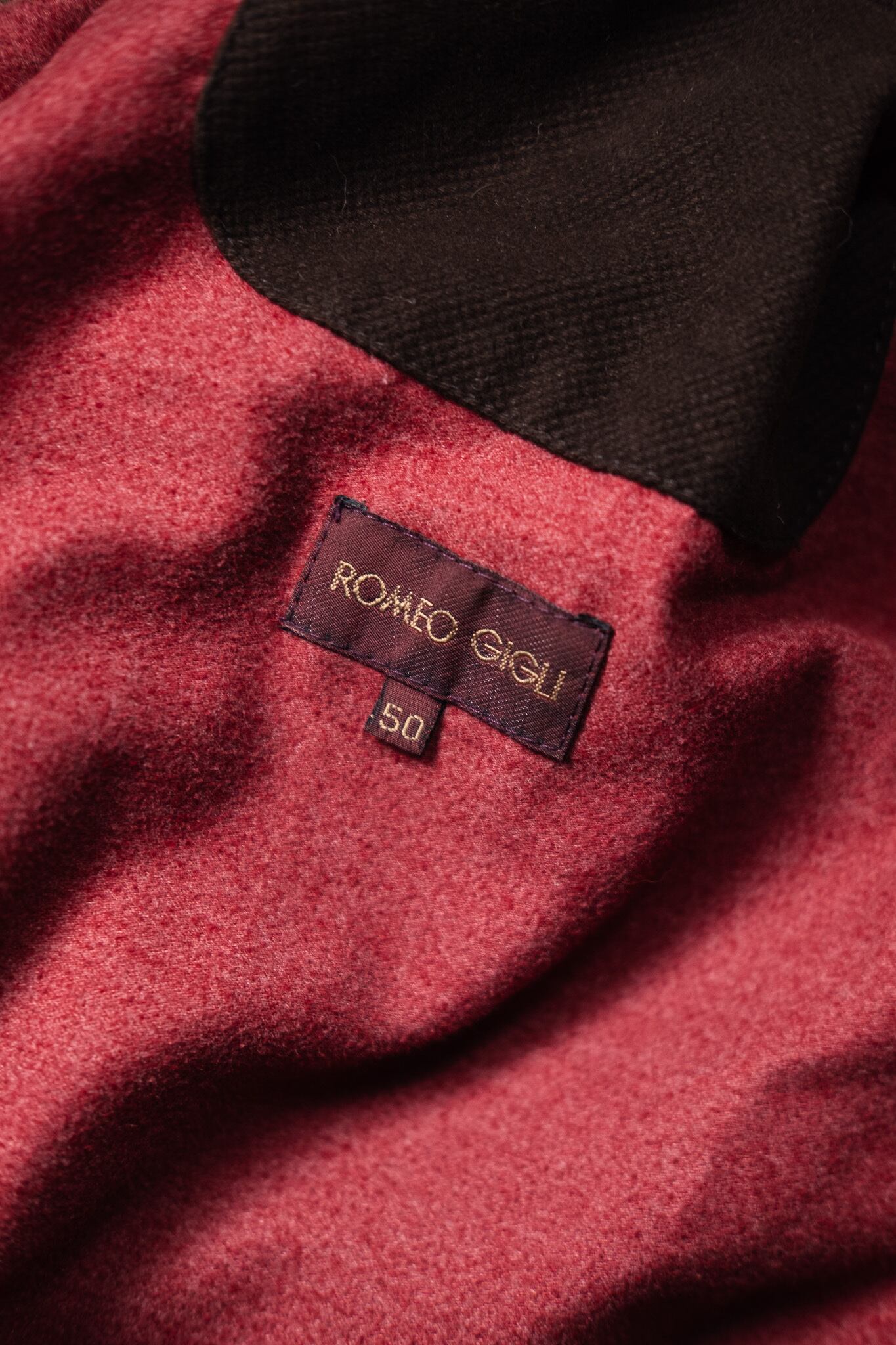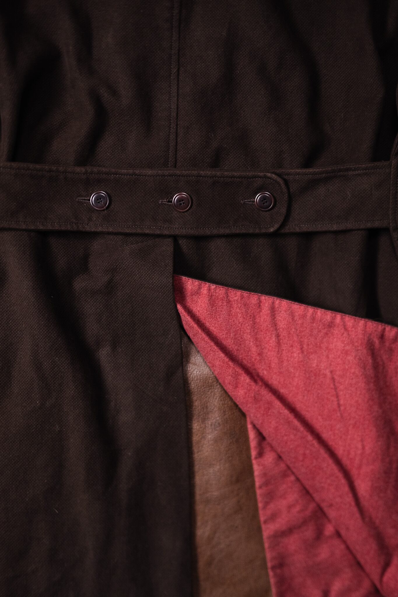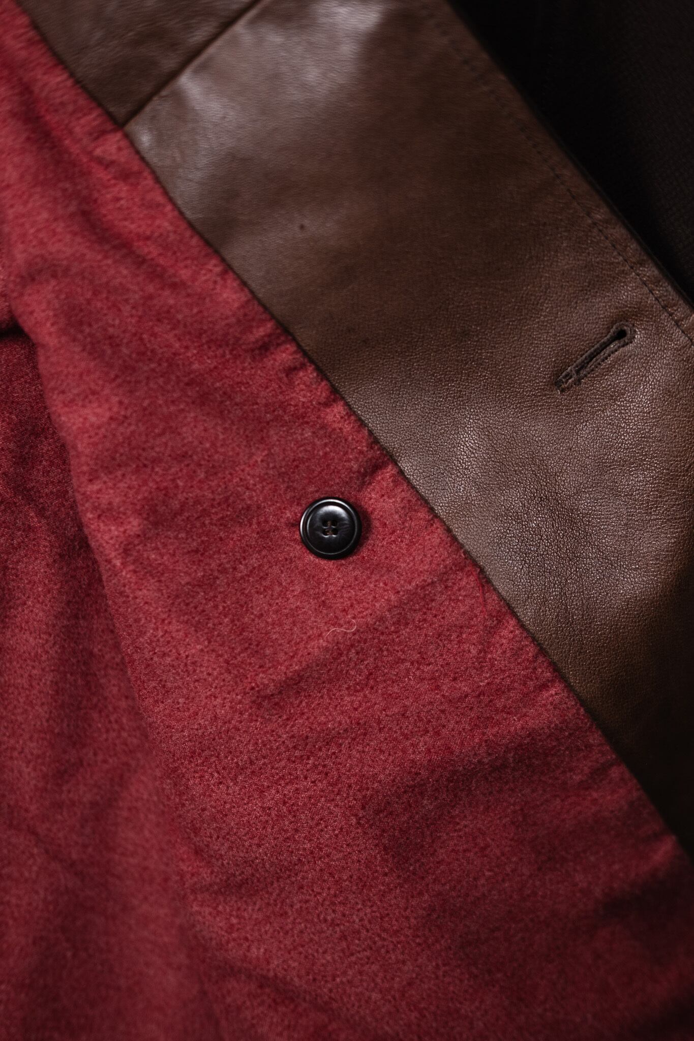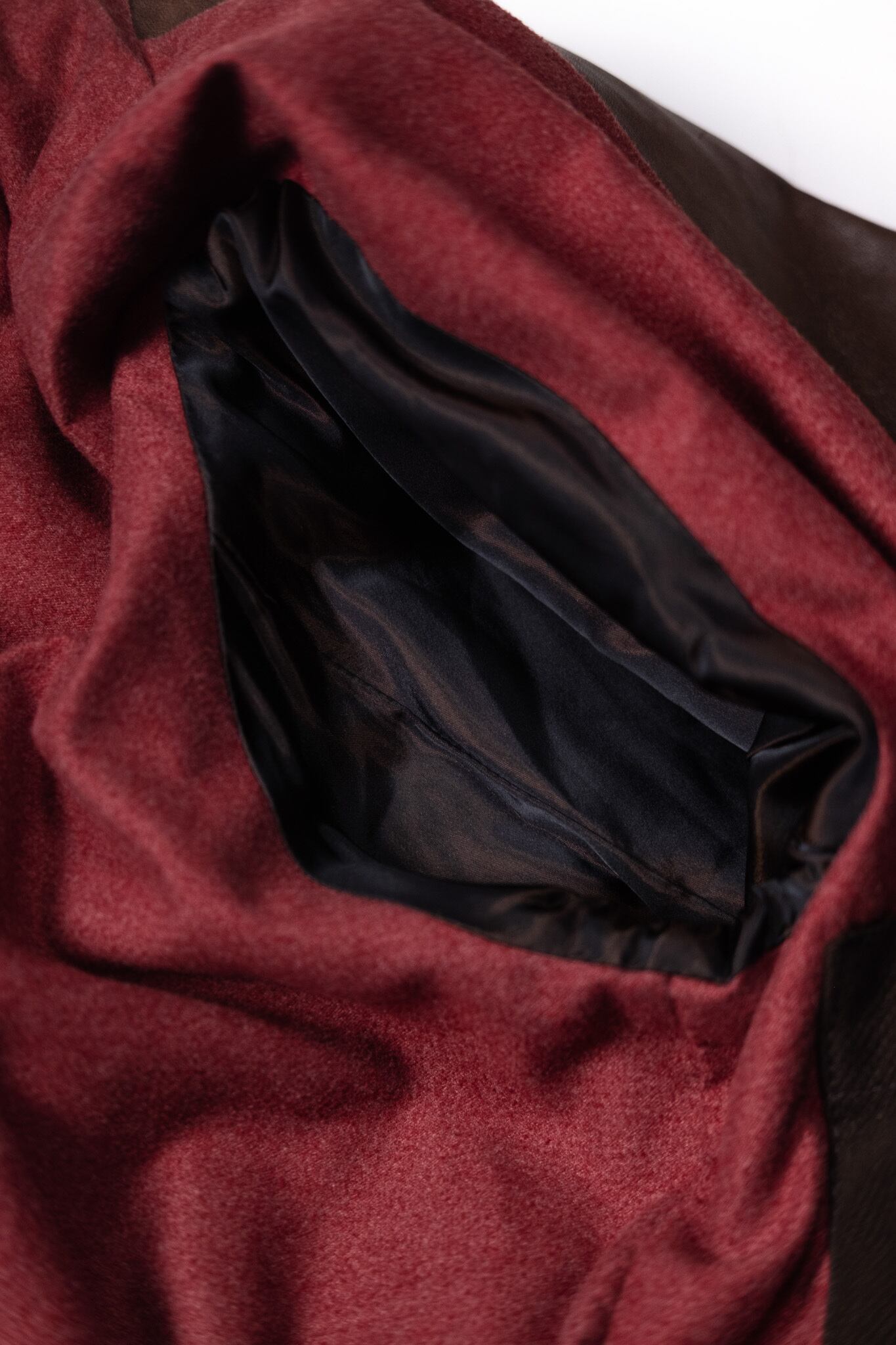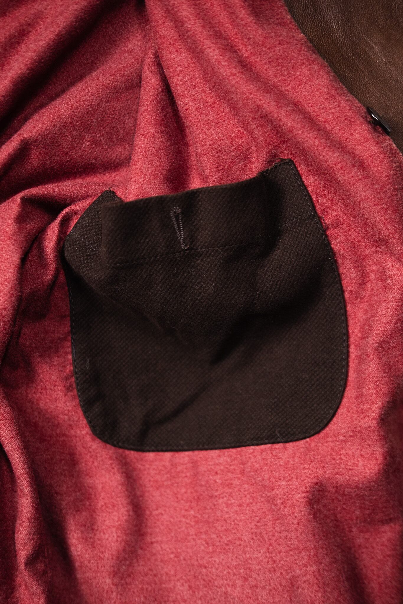 裏地は深いバーガンディのフランネル。